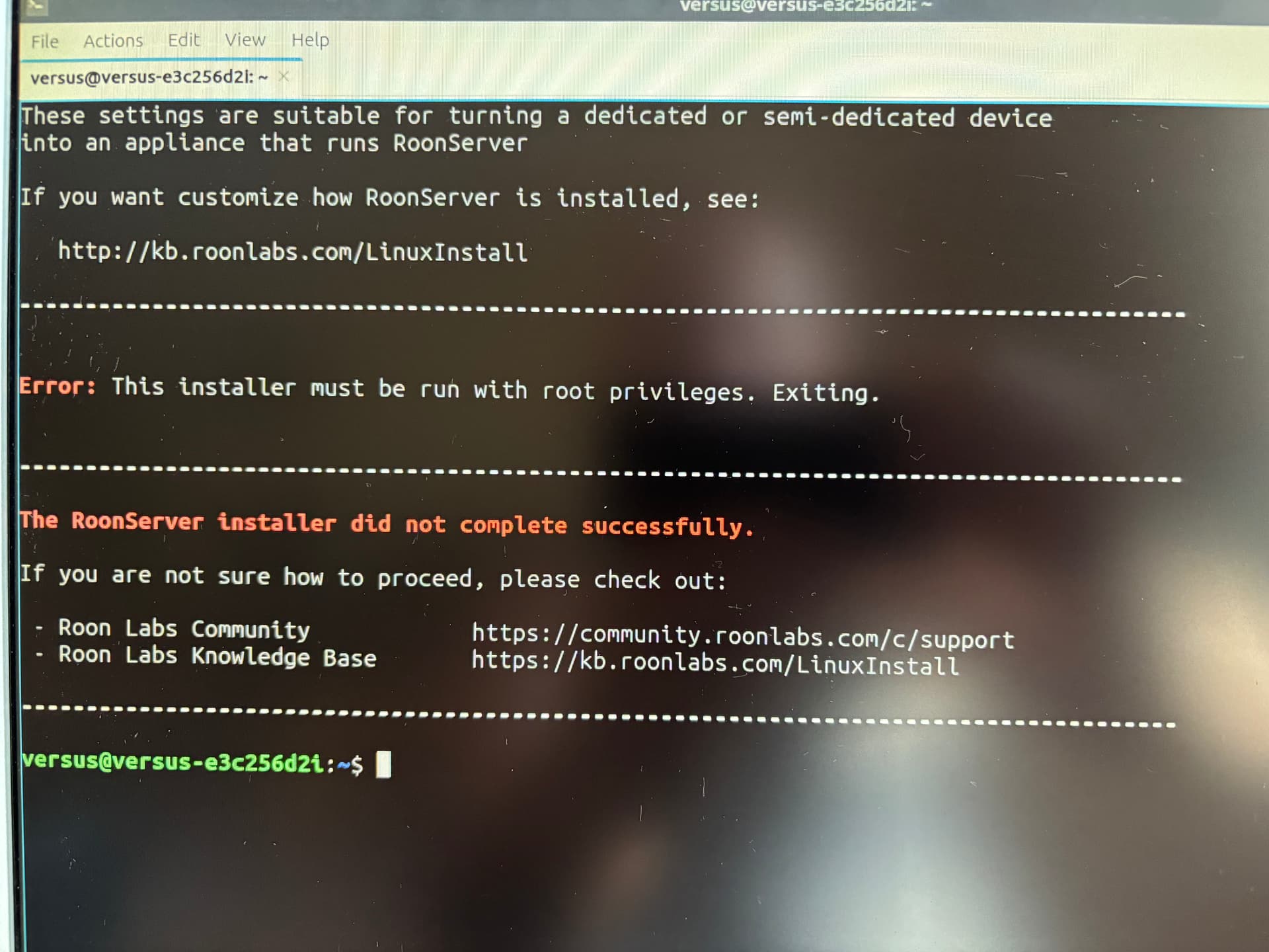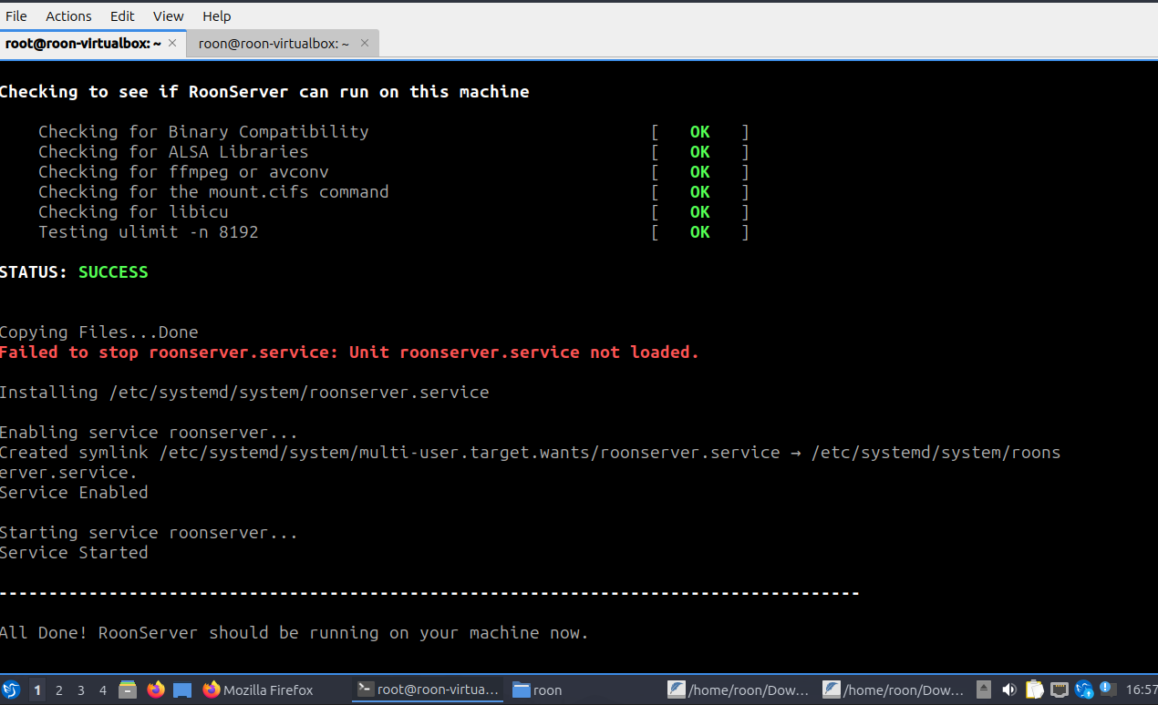Make sure Roon server is installed using sudo.