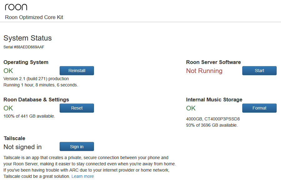 I disconnected power and left it for 1 hour. Roon server software is still not starting.