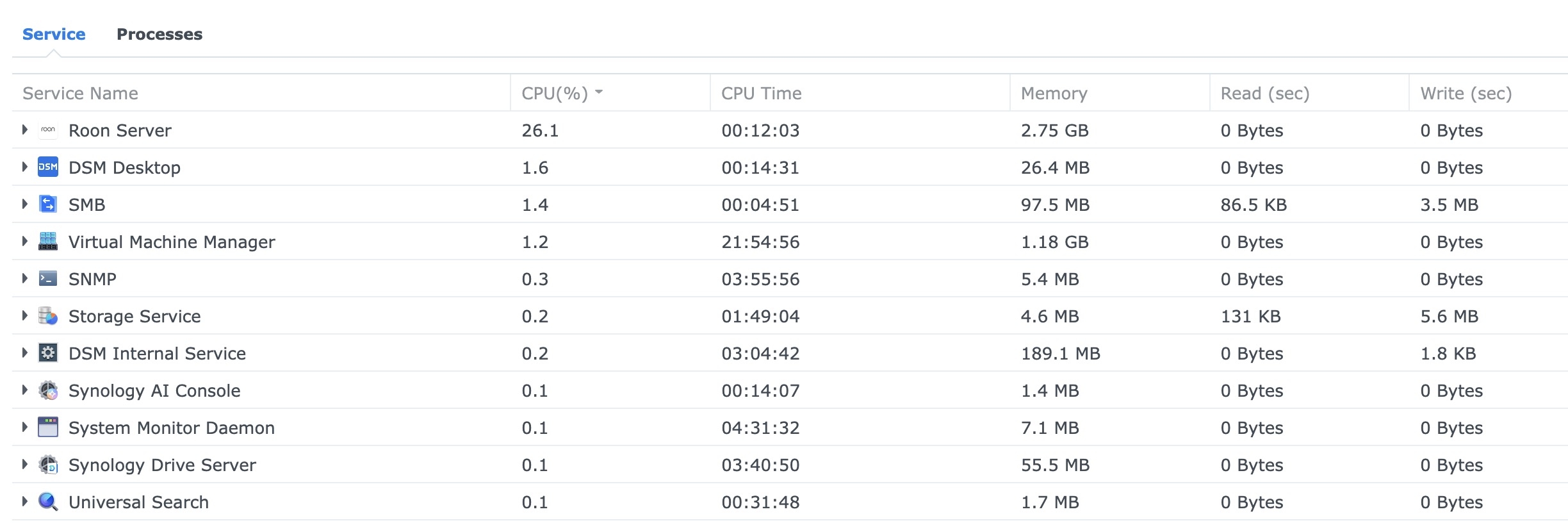 · Issue Description My Roon Server is constantly running at 25% CPU usage on my Synology DS923+, which strongly suggests it's maxing out one of the four CPU cores. This behavior persists even when no playback is occurring and the library hasn't changed. 10% of my albums remain unidentified.