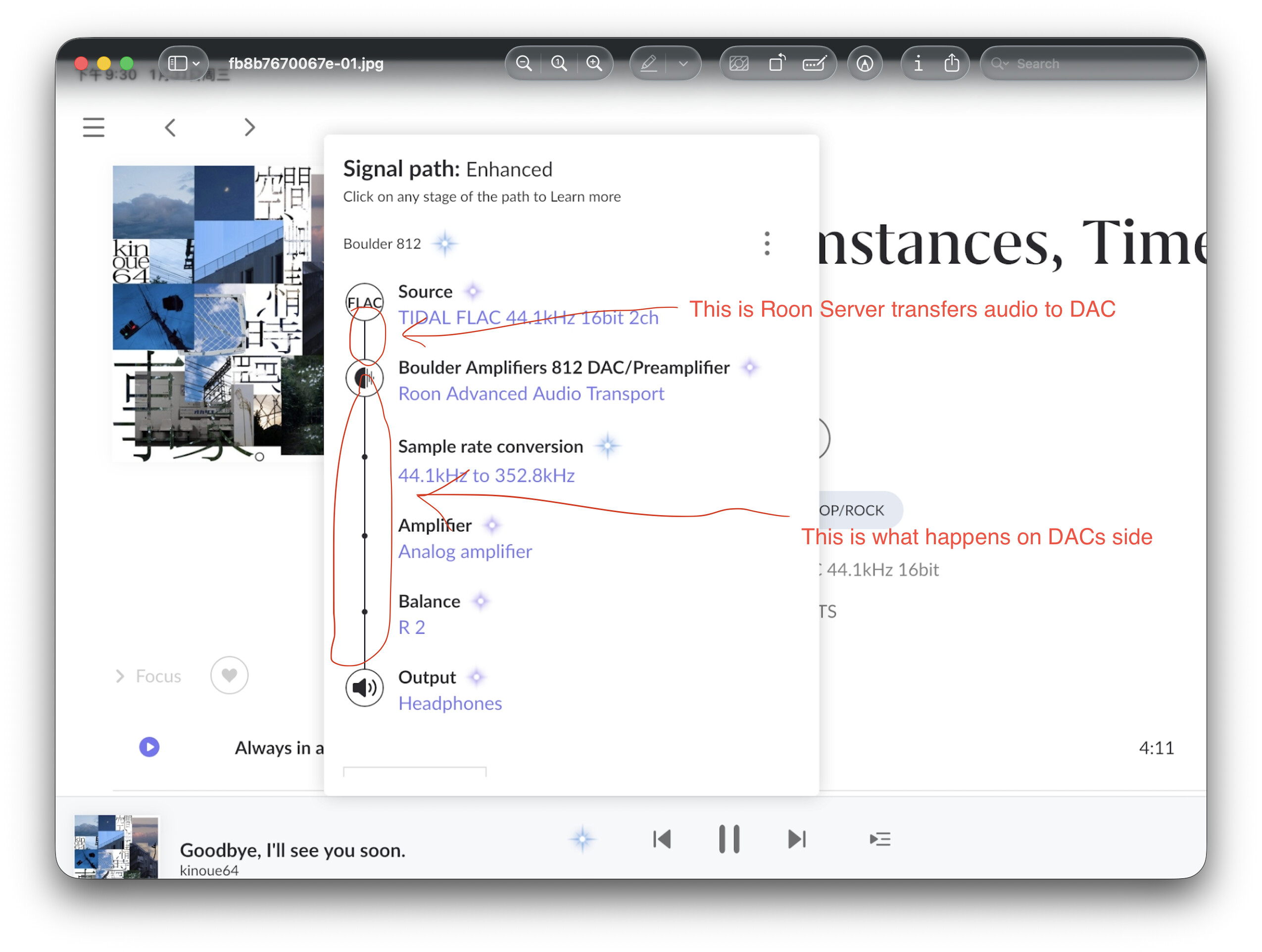 If you looked closely, you’d see that the Roon Ready Ethernet signal path tells the truth, in that the Boulder itself “enhances” the data by it’s internal upsampling after receiving an untouched bit perfect stream from Roon.