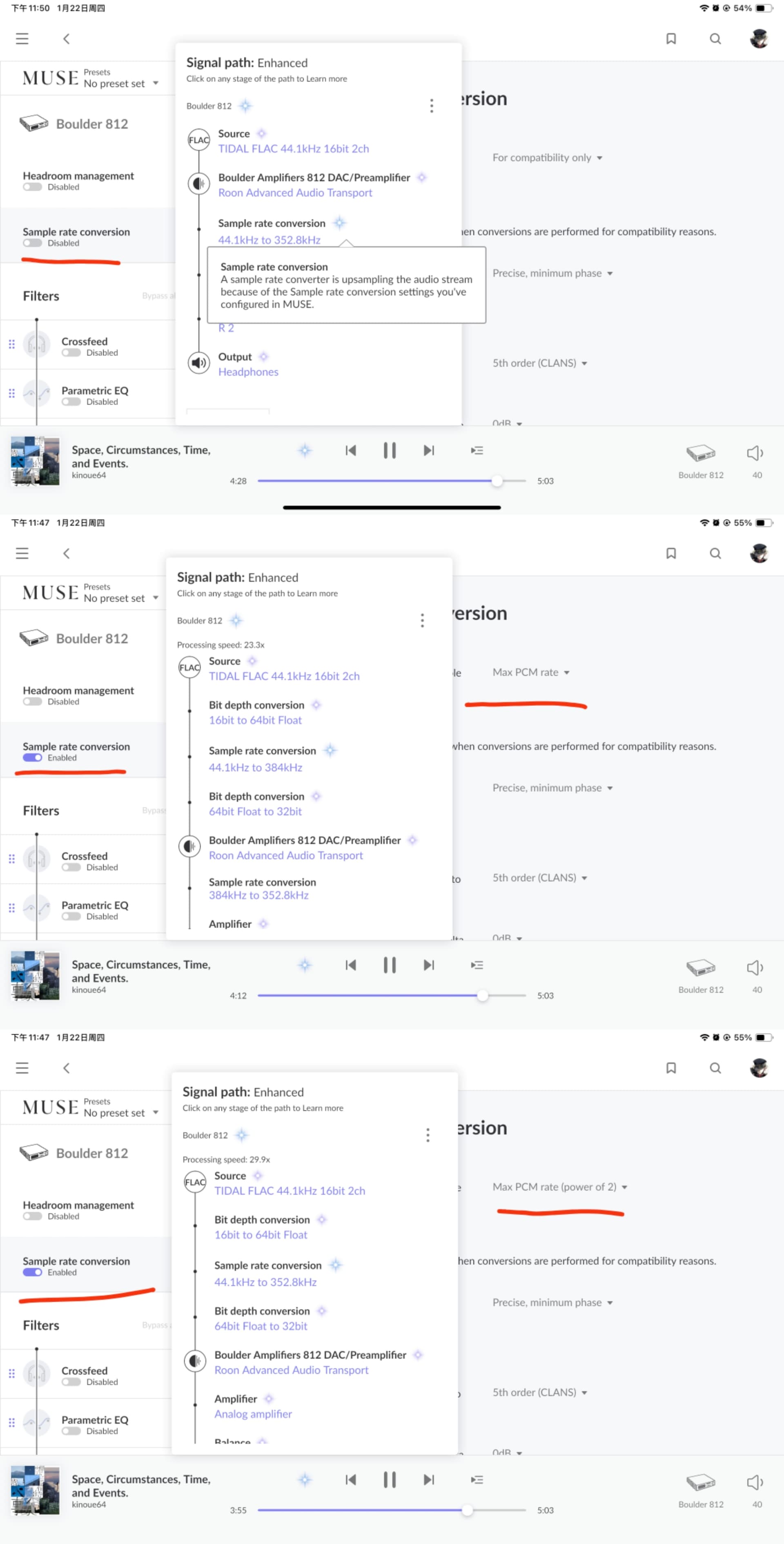 Also, since that Boulder Amp/Dac is always upsampling, you are always ( and have been) hearing Enhanced Audio and not “Lossless” meaning untouched. Most any DAC is going to be pushing out Enhanced audio in some way since they oversample internally. If you are really interested in hearing otherwise, then give a listen to a NOS(Non-Oversampling) DAC; they are out there but not common; some DACs give you the option of a NOS mode.