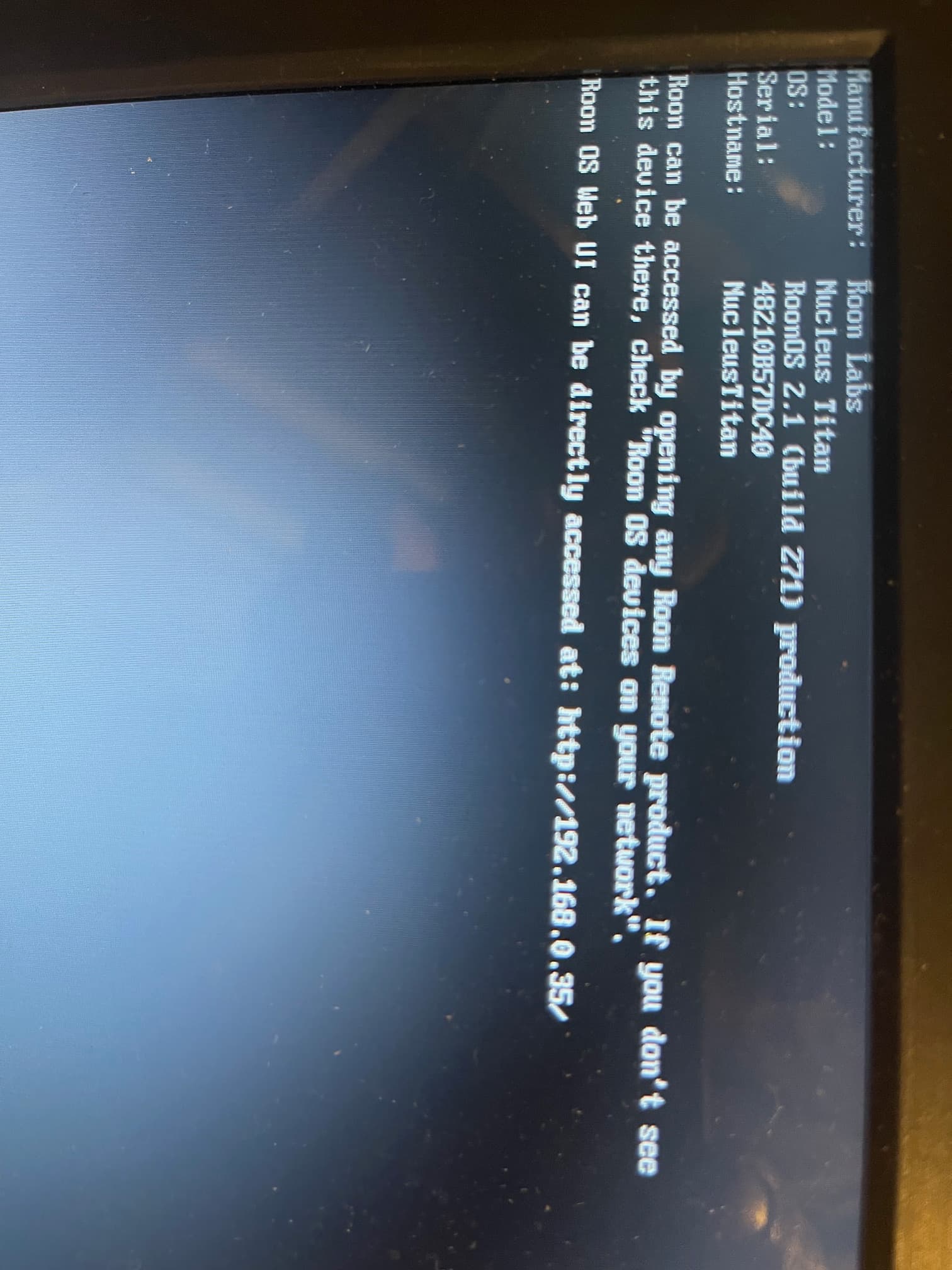 Additionally, please connect a monitor via HDMI to your Nucleus Titan and share a photo of what appears on the screen.