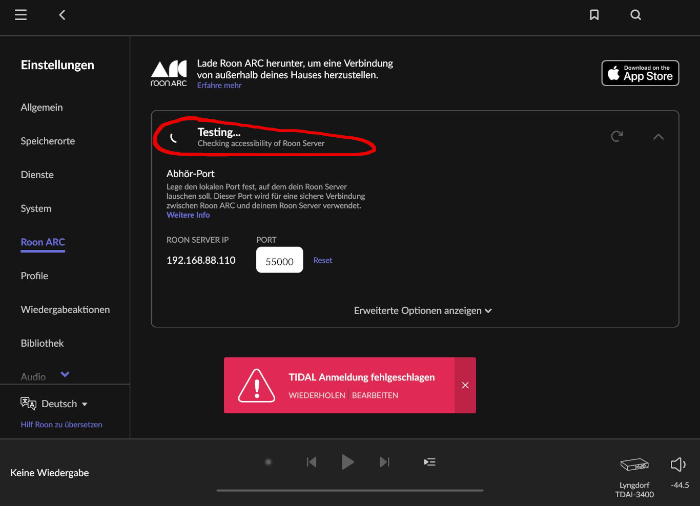 The system (roon) setting for the font size is “Standard.”