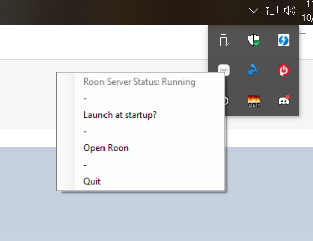 If you click that to reveal the hidden icons you should see a RoonServer icon, like so…