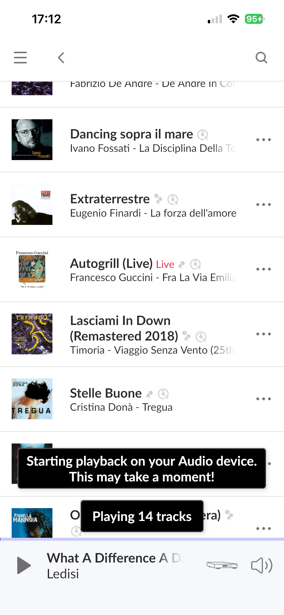 I do see my full library, my play lists but when asking to play one song it will not start and this message is posted“ Starting playback on your audio device. This may take a moment!“ sadly the music doesn‘t play at all! Thank you for your support. Paolo