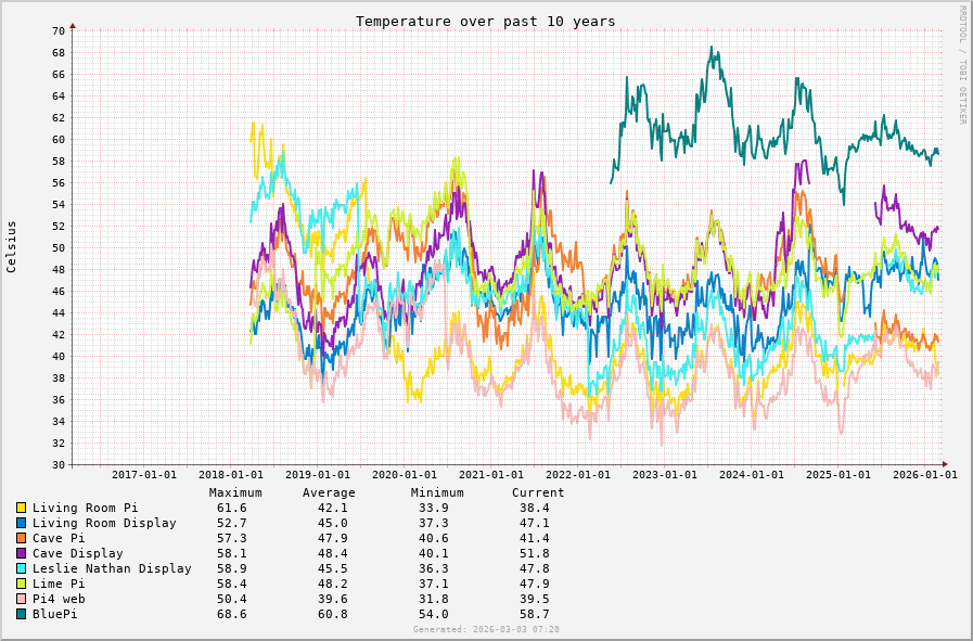 Hi all - I know this has come up a few times but not super recently. I’m wondering what sort of temperatures others with a Flirc case are getting on their RPi4 these days? Mine (RPi4b 1.4) seems hotter than ever, at around 59 degrees, which I know is in tolerance but can’t be doing it any favours. By contrast, my RPi3b runs at <40 degrees. I only use Roon and HQP NAA on Ropieee and am running 2026.01. Thanks!