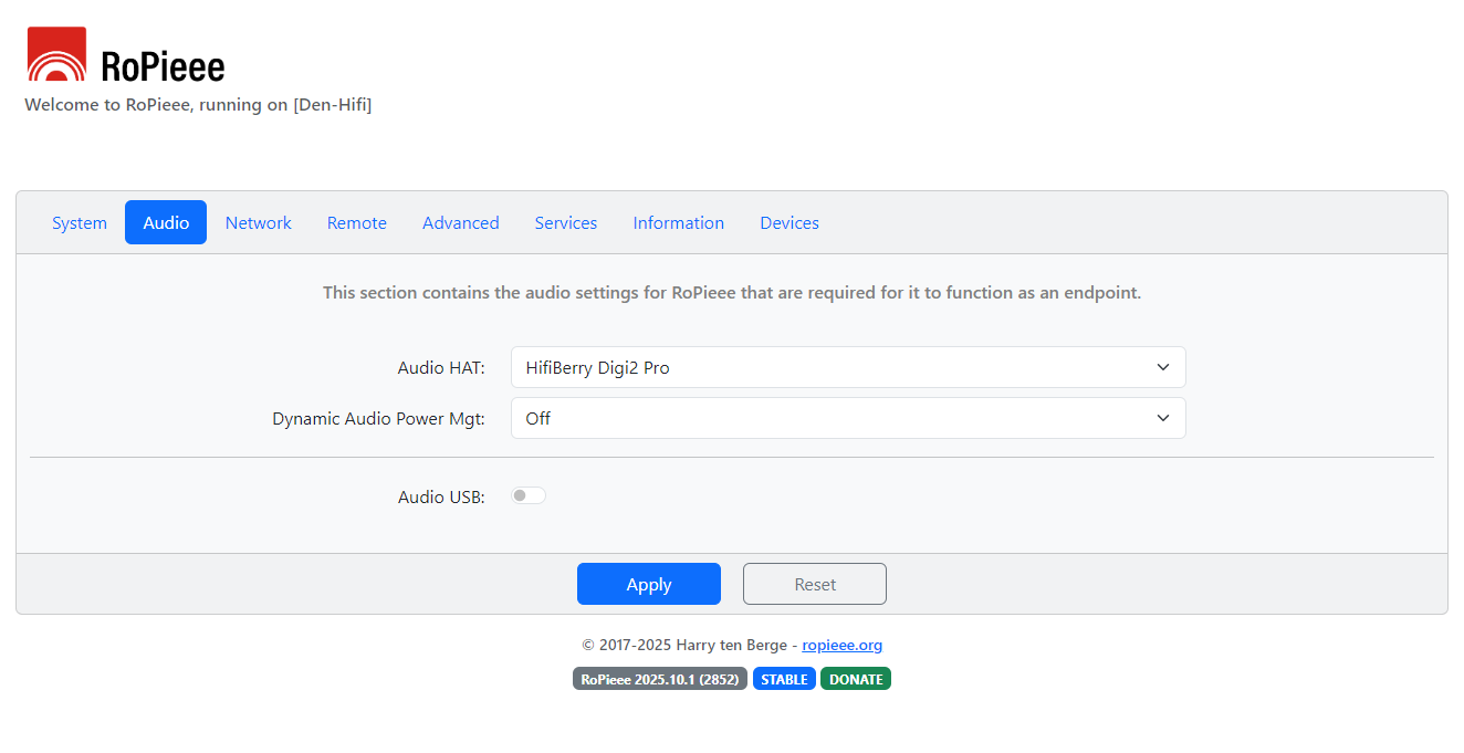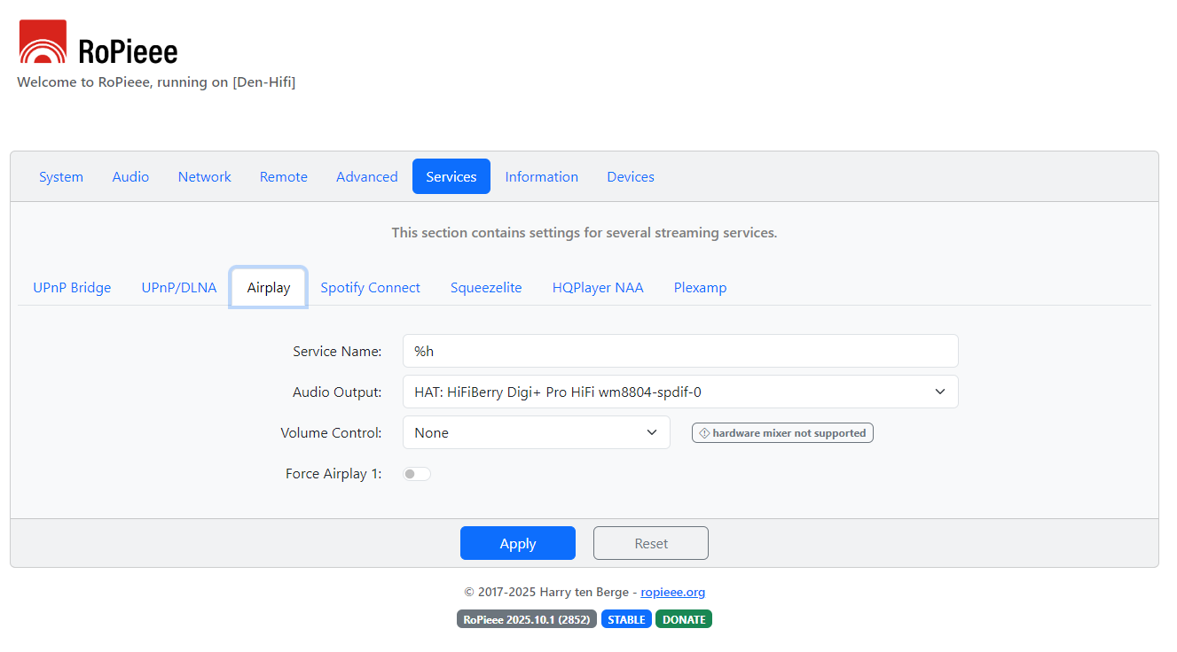 I have the Hifiberry Digi2 Pro correctly selected as the Audio HAT but Ropieee shows the Digi+ as the audio output under services.