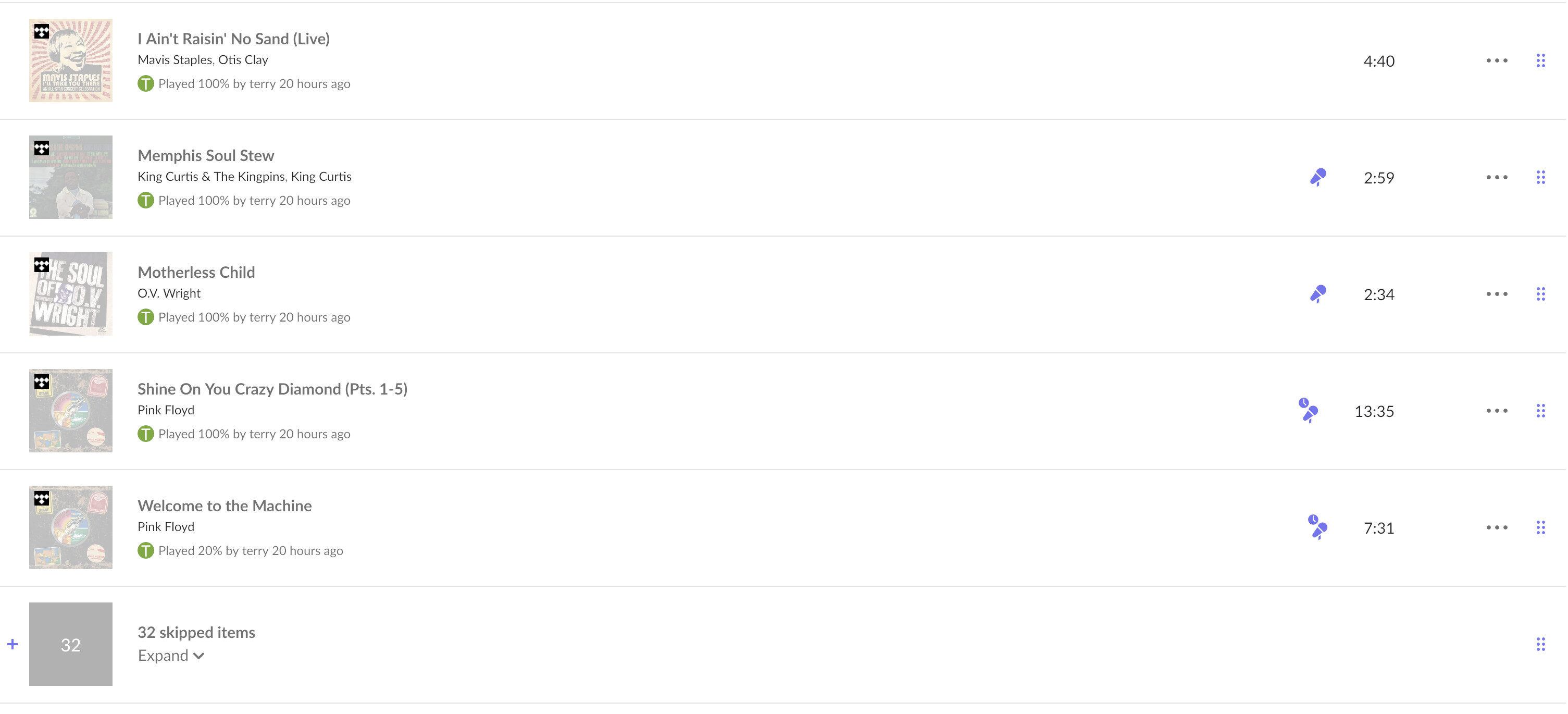 i’ve now had a long series of oddly selected repeating songs. There was a series of 32+ Pink Floyd songs that were - inexplicably - played after my Memphis Soul songs.