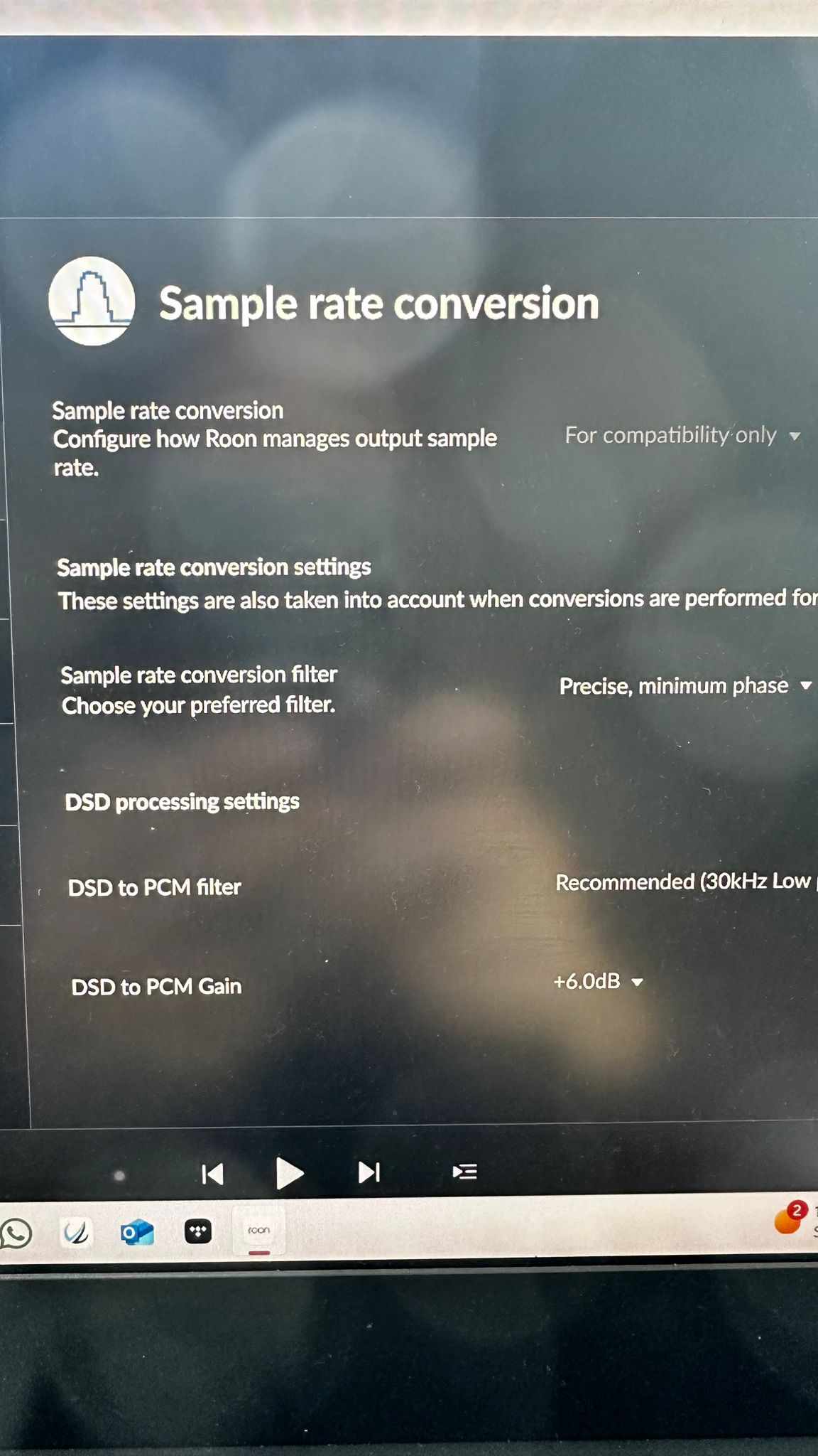 · When I play a hi_Res file above 44.1, for example 88.2, the sample rate convsersion keep converting it back to 44.1. When I check the sample rate conversion tag, I can see that the option is set to "For compatibility only" which is dimmed and cannot changed, what are the possible causes? I am using Teac UD-701n as the end-point, connecting the same home network as Roon server using ethernet connection. Please advise!