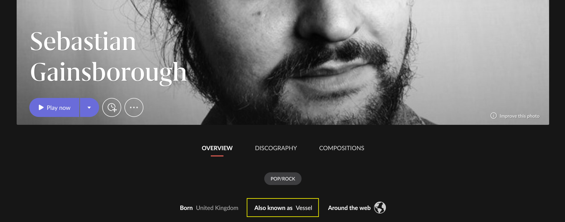 I’m considering an edit here, but I might not make it. The issue is that the following album is not part of his Vessel persona.