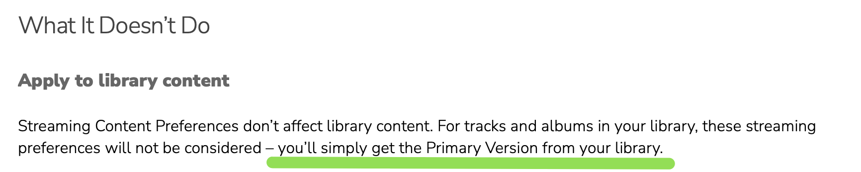 I thought that local files are automatically the primary version but maybe I am wrong. To me, the streaming preferences help page seems to say so,