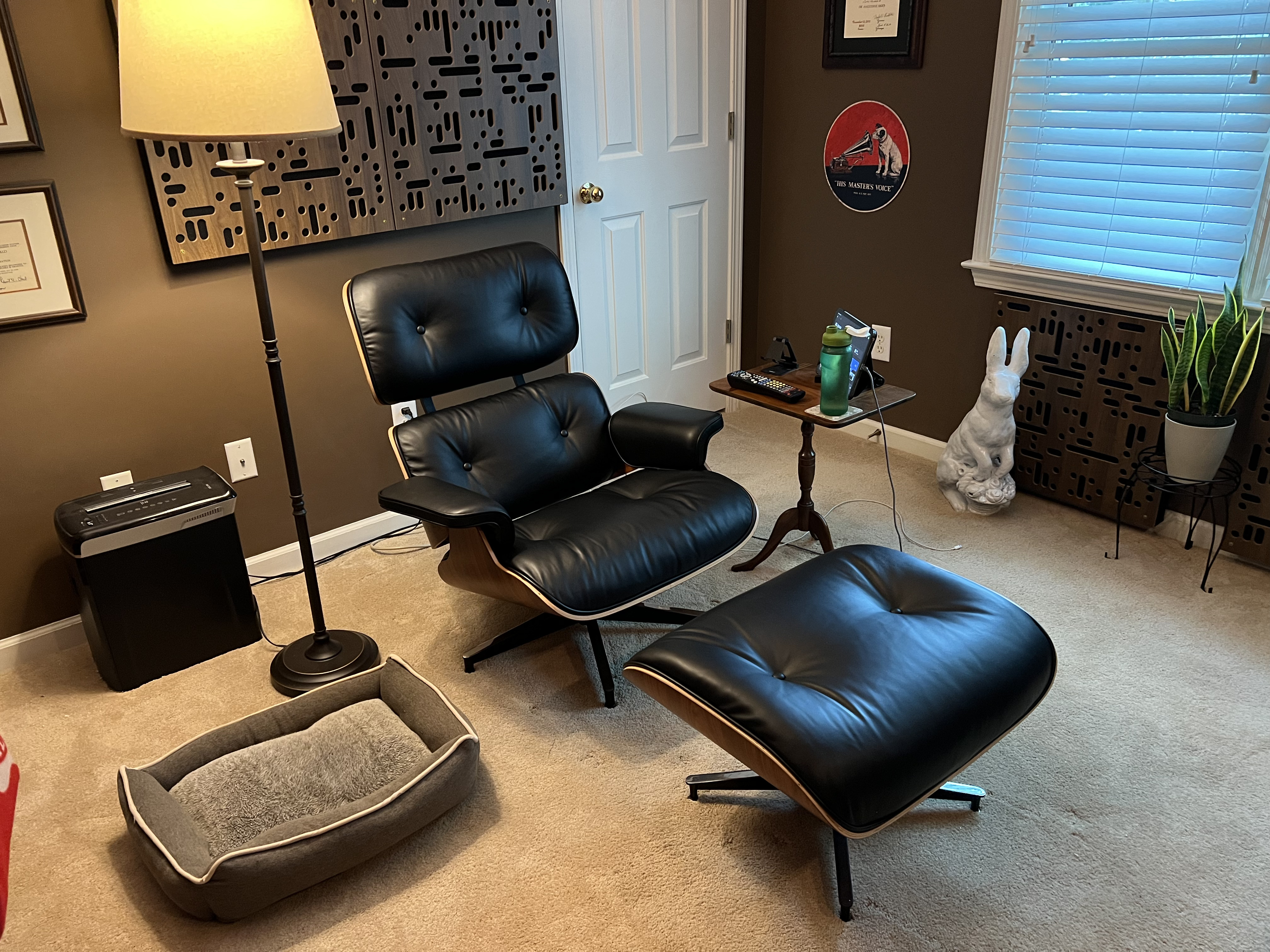 I would recommend this CurverK for anyone who wants an Eames lounge chair but doesn’t want to pay $7000 or more for an authentic Herman Miller. I paid $1599 (no freight and no tax) for this very high quality replica. You can get cheaper models for half the price of this one if that’s what you want.