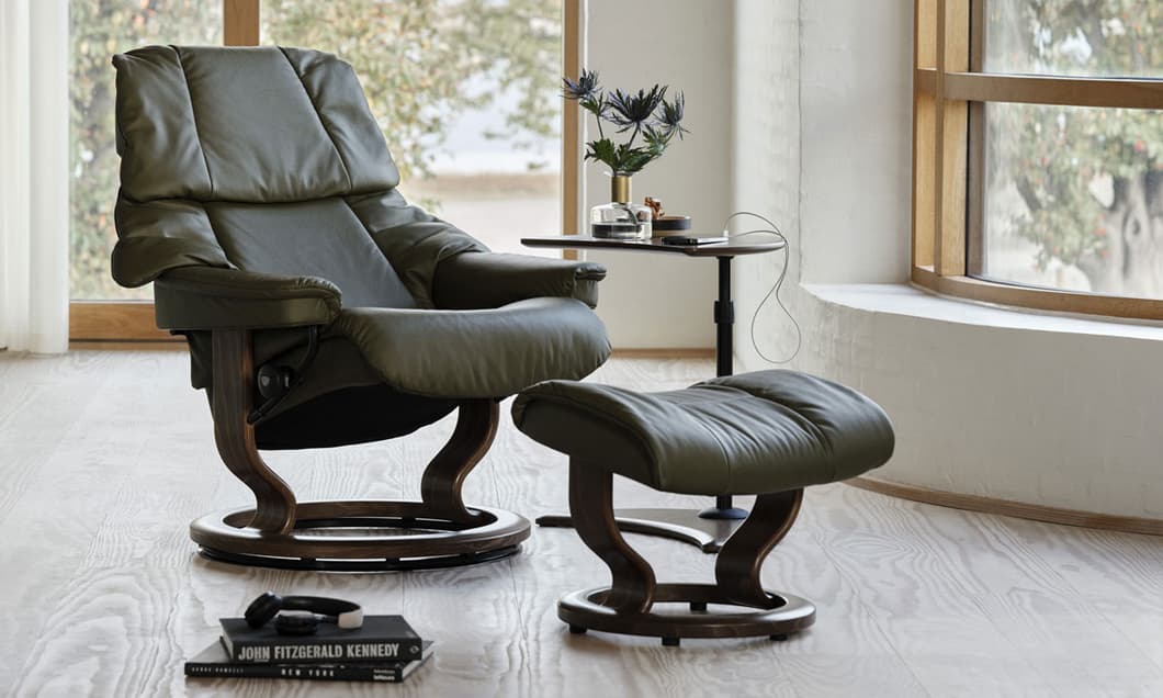 Here is the Stressless Reno Classic medium size in Dark Olive I’ve had my eye on for a long while. They are expensive and I would need 2, one for me and one for my wife.