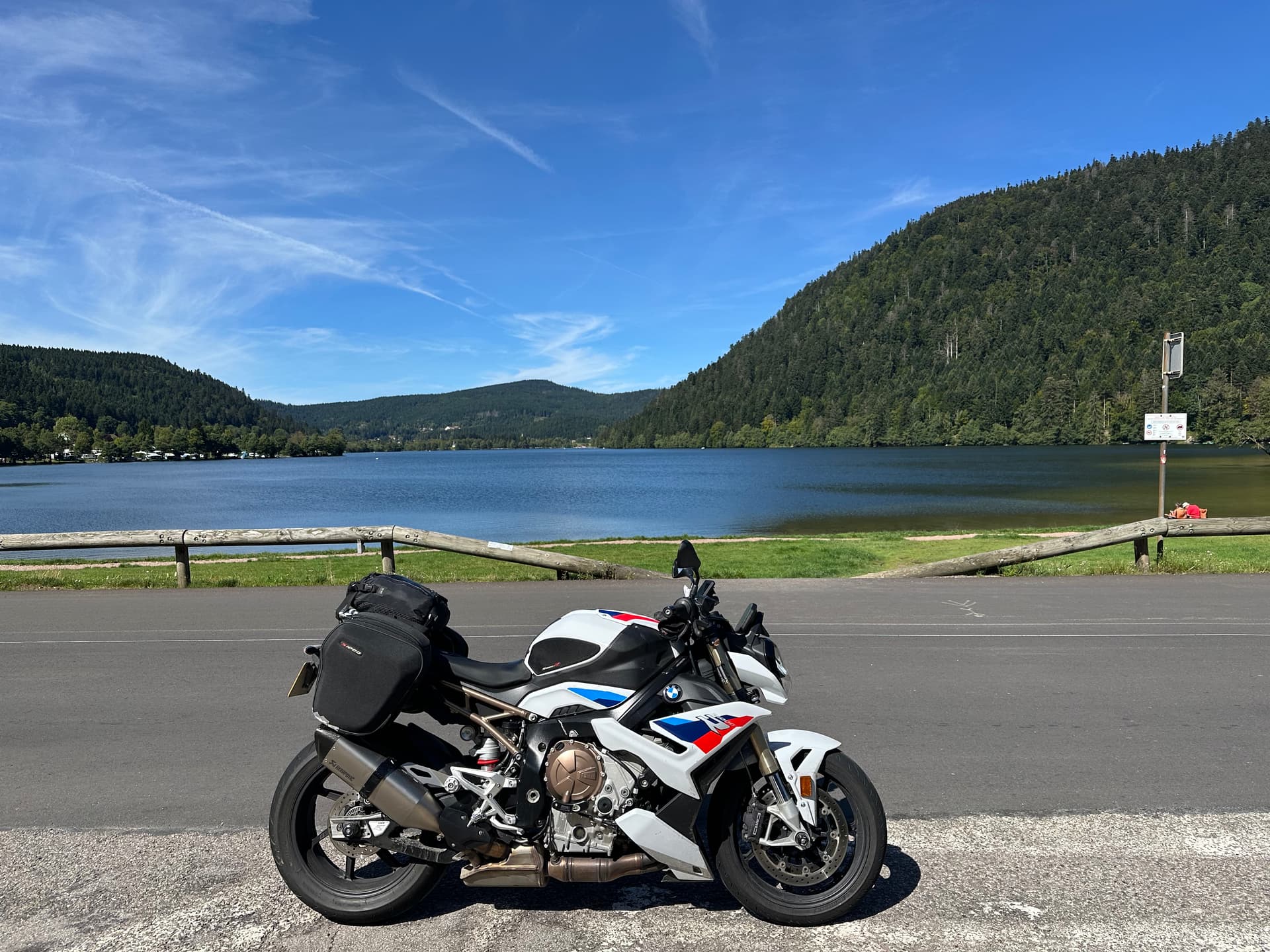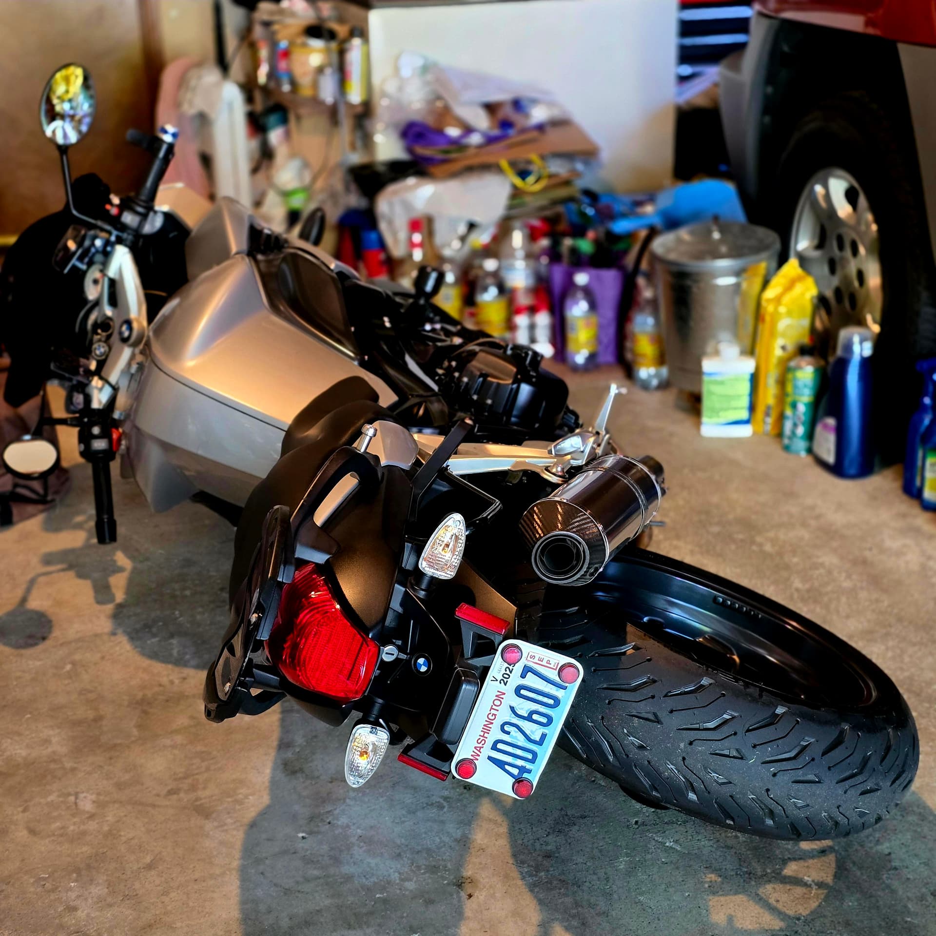 No problem in the end. I had the neighbor pop over for help with a lift. I only managed to move it an inch on my own. Now I know how the bike handles this situation without the rear bags on.