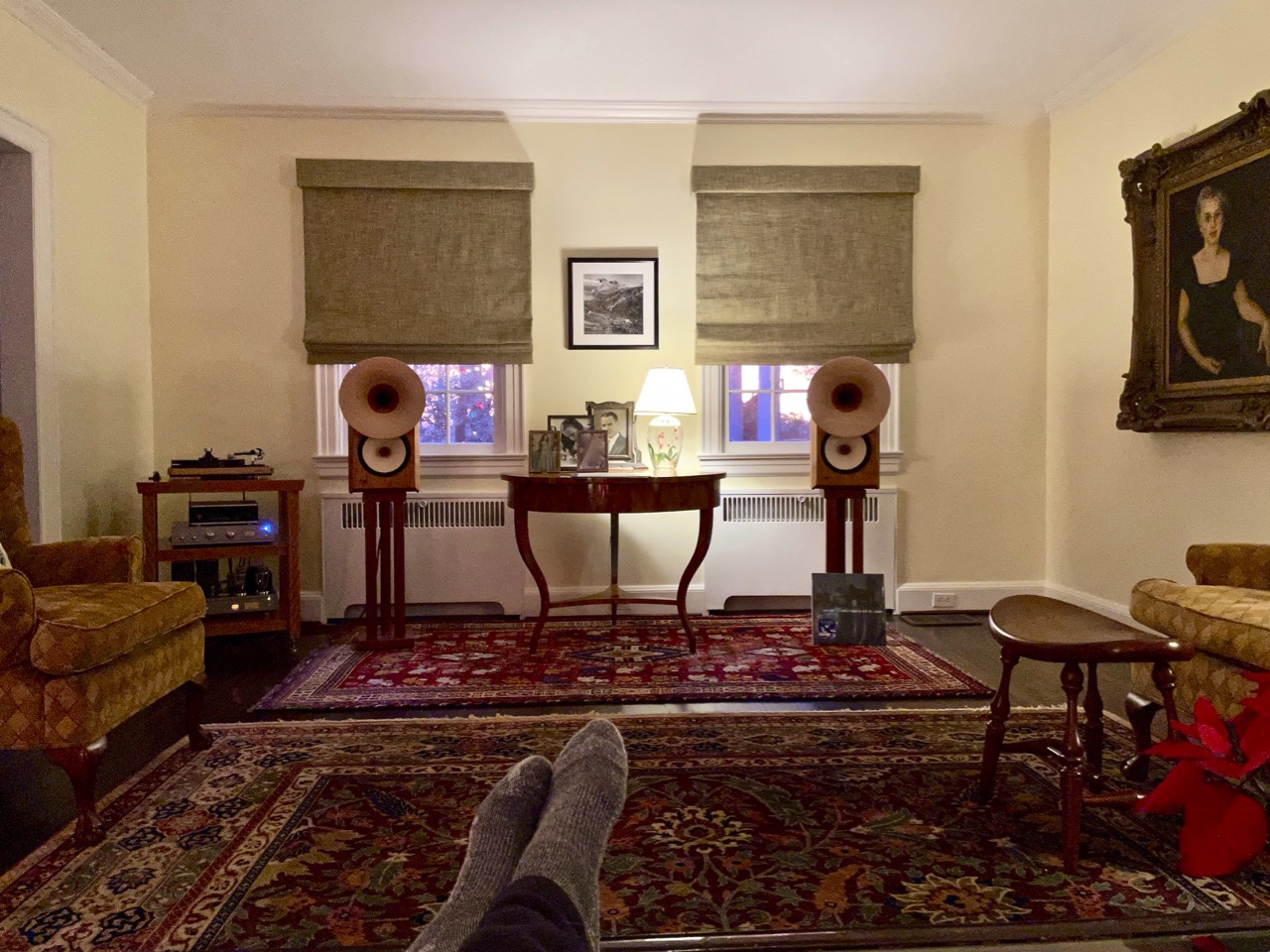 Quite simple: self powered speakers Prodipe and Sq Duet. Nice sound on the bedroom for listening before sleeping and sometimes just awaken.