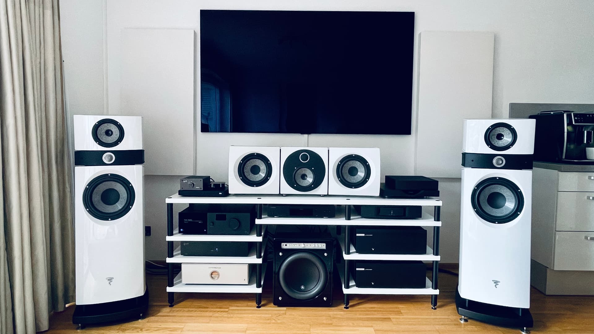 Put this together last year and very happy with the sonic performance in 2.0, 2.1 and 5.1 use. Rear speakers are a pair of Focal Diablo Uropia.