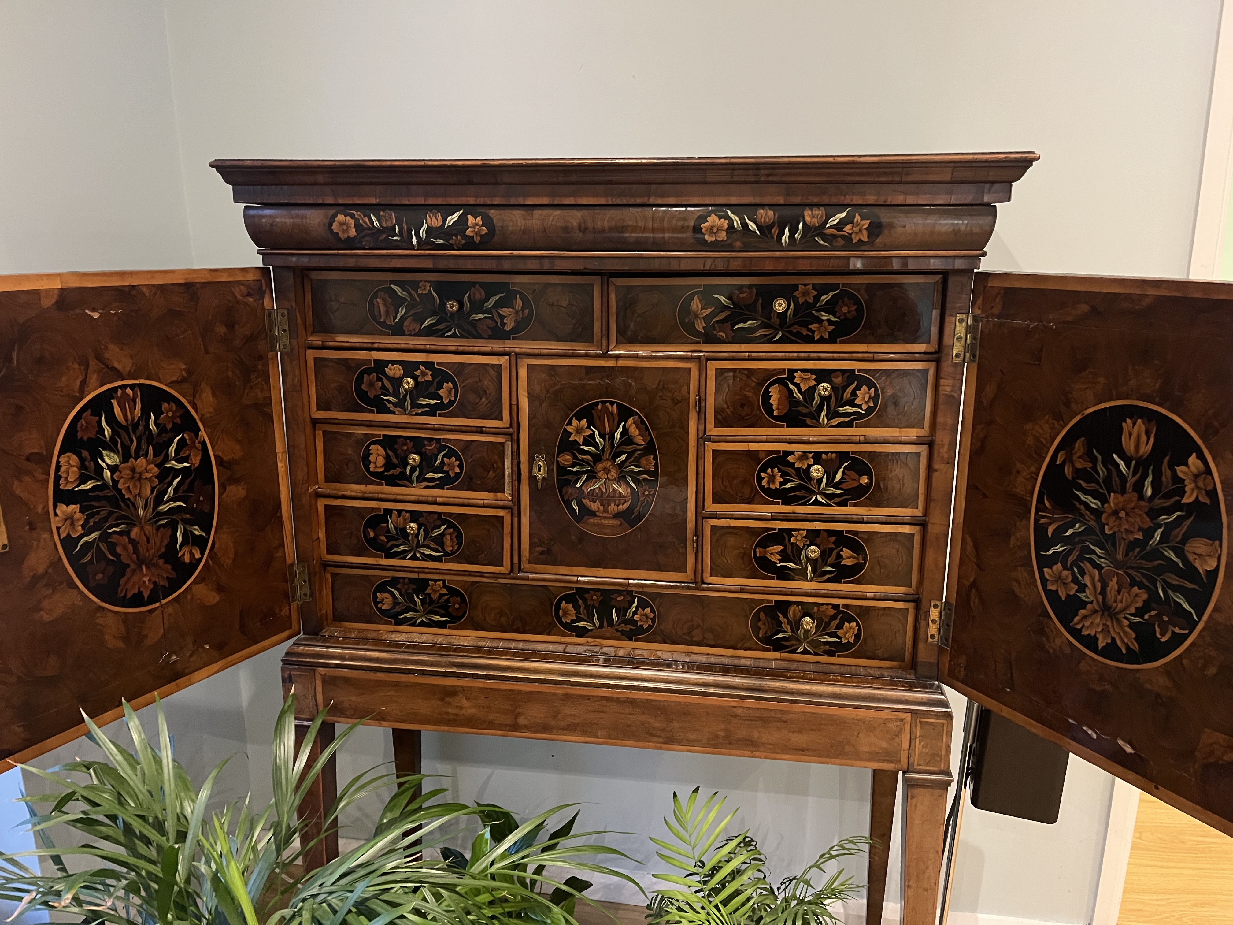 It’s a statement piece and beautiful. It does not need to go with other furniture. It is a work of art. Keep passing it down.