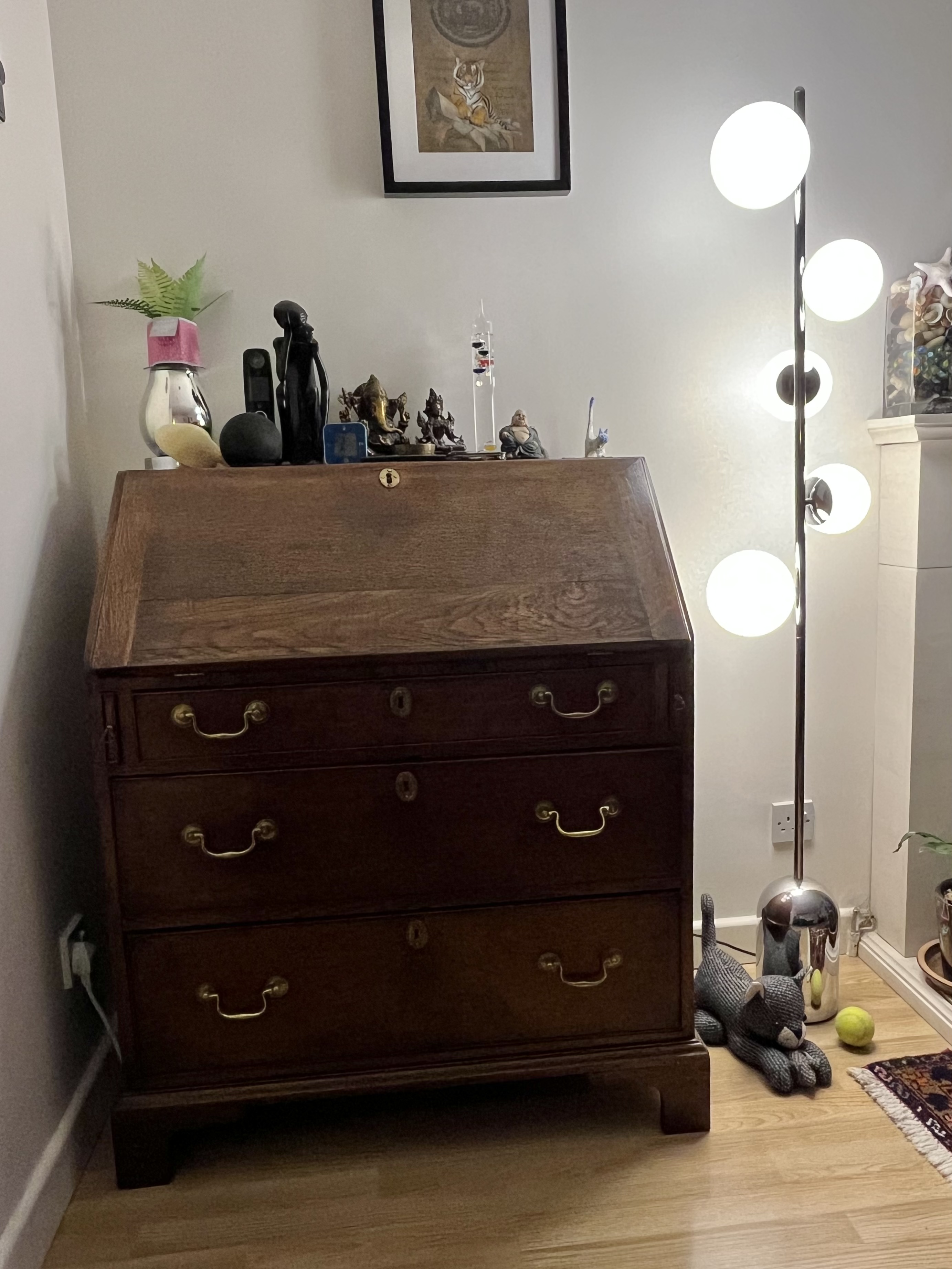 You must not part with it, it’s beautiful! If it’s too jarring in relation to your house, sell your house and build one that matches the cabinet!