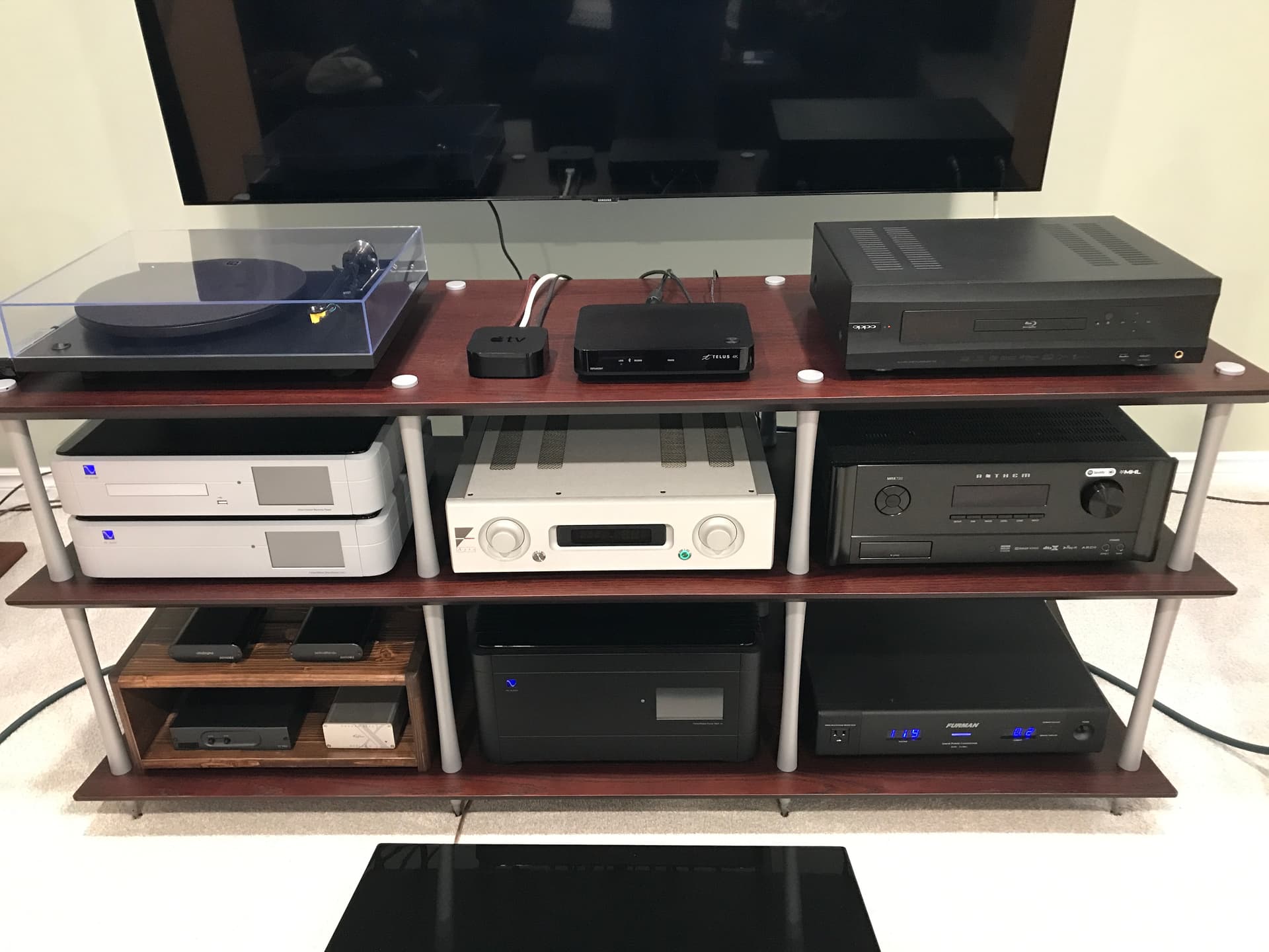 I always find it really interesting to see the different systems. Sometimes you see pieces you’re familiar with or maybe even own now or have in the past. Sometimes you see things you’ve never heard of. And you get to see the different rooms that the systems live in. A tiny peak into the lives of people you’ve never met. In the end it’s all for the love of music and that makes every system great! Anyway, I though I might add my own contribution to this thread. I have more than one system in my home but this is the main one which is my pride and joy. It lives in our basement. I’ve probably been working on this for at least 15 years. Many components have come and gone but this is what I have now. Very happy with it. Is this the end game? I doubt it. Are we ever done tinkering when it comes to this hobby? Probably not but I think I’m close and if this is how it ended, I would die happy. Anyway, here goes.