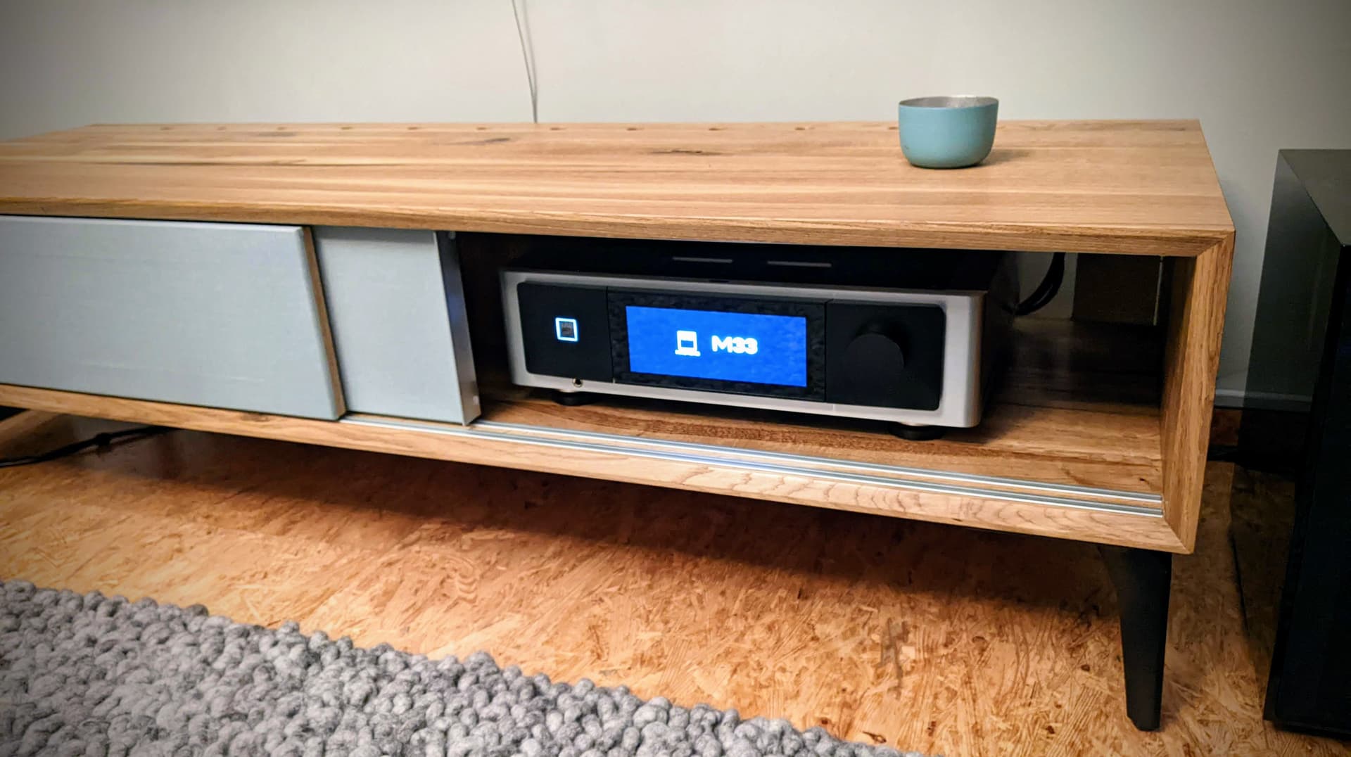 And of course I had to build a new Lowboard around this… I may have to change the metal feet to some wooden ones (special request from my loved one)
