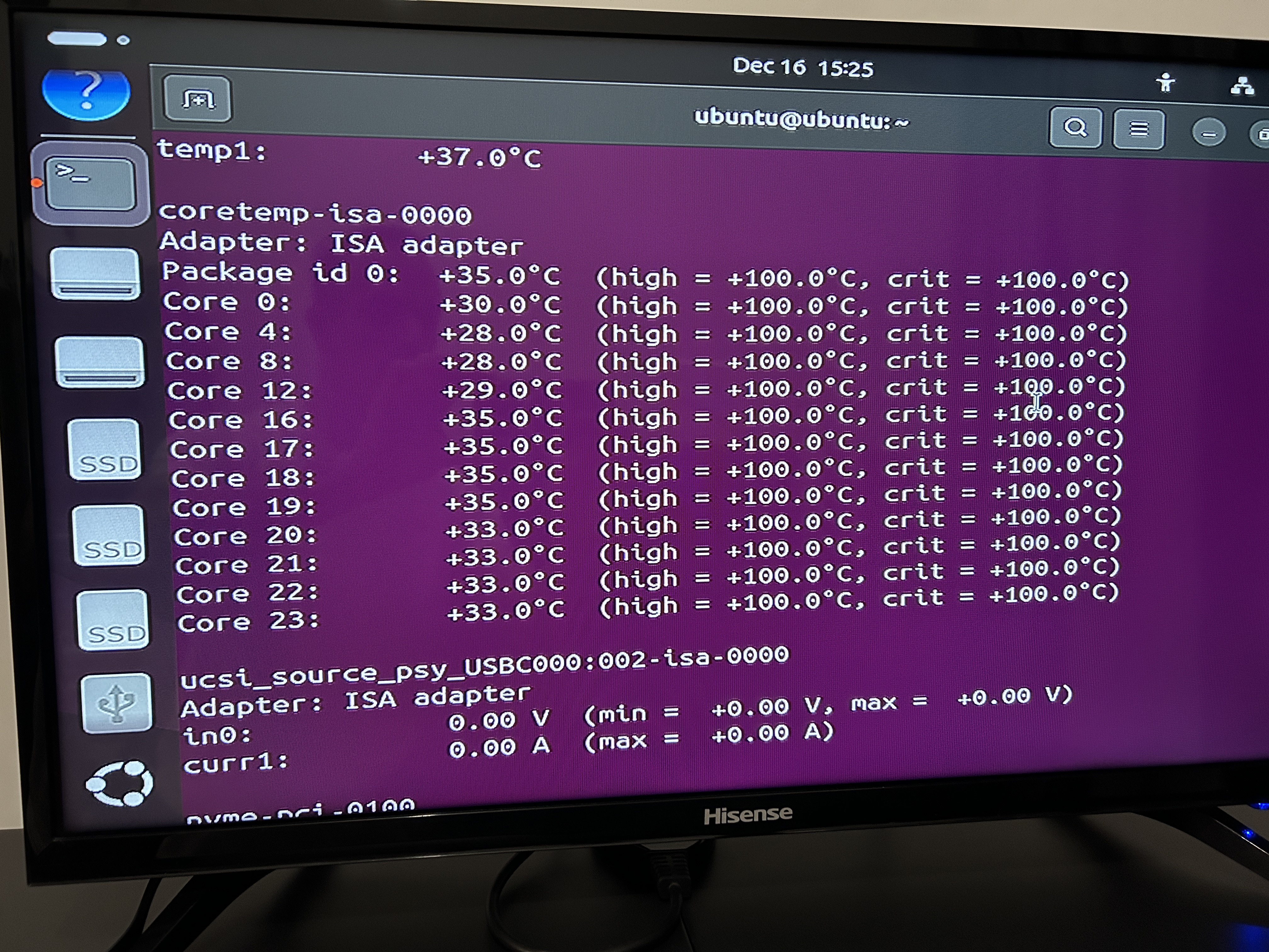 So I booted using Ubuntu USB drive tests to get the Akasa Maxwell AC 13th gen i5 cpu temperature and here is the screenshot: