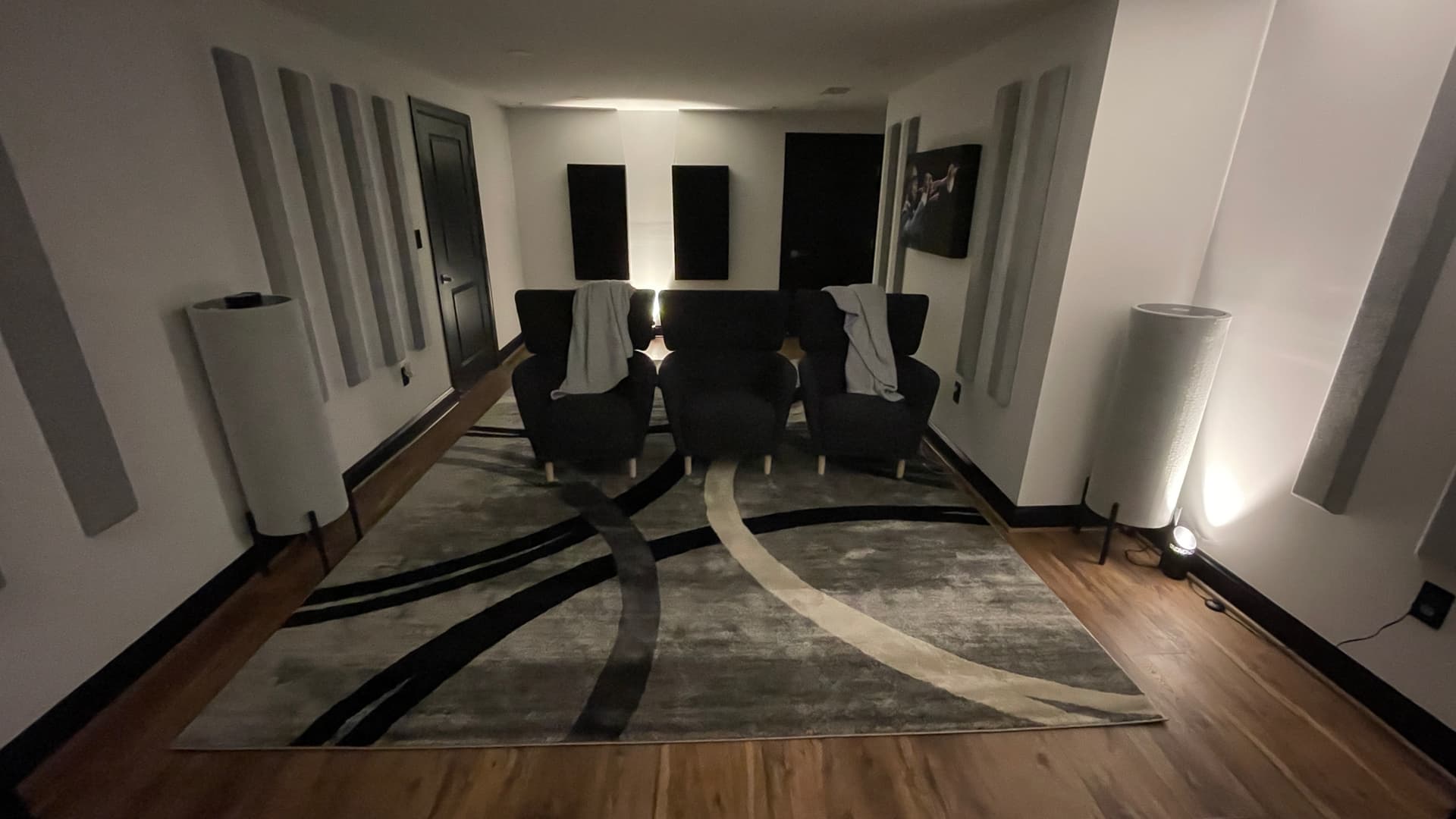 And for now the room is ready. Comfy chair installed and added absorption panels on the front and rear walls to tame the high tones slightly. I have to apply some mild DSP between 200Hz and 400Hz as the finishing touch. It sounds awesome. Very happy with the end result.