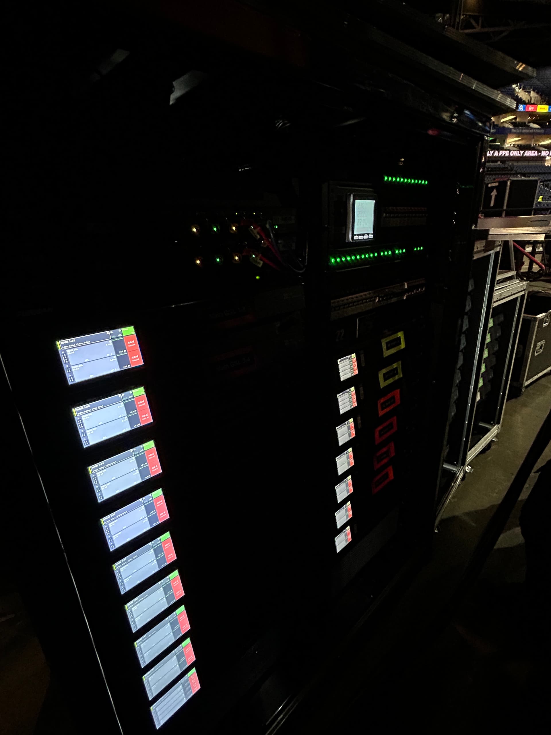 I took a quick (poor quality) shot of some of the power amp racks.