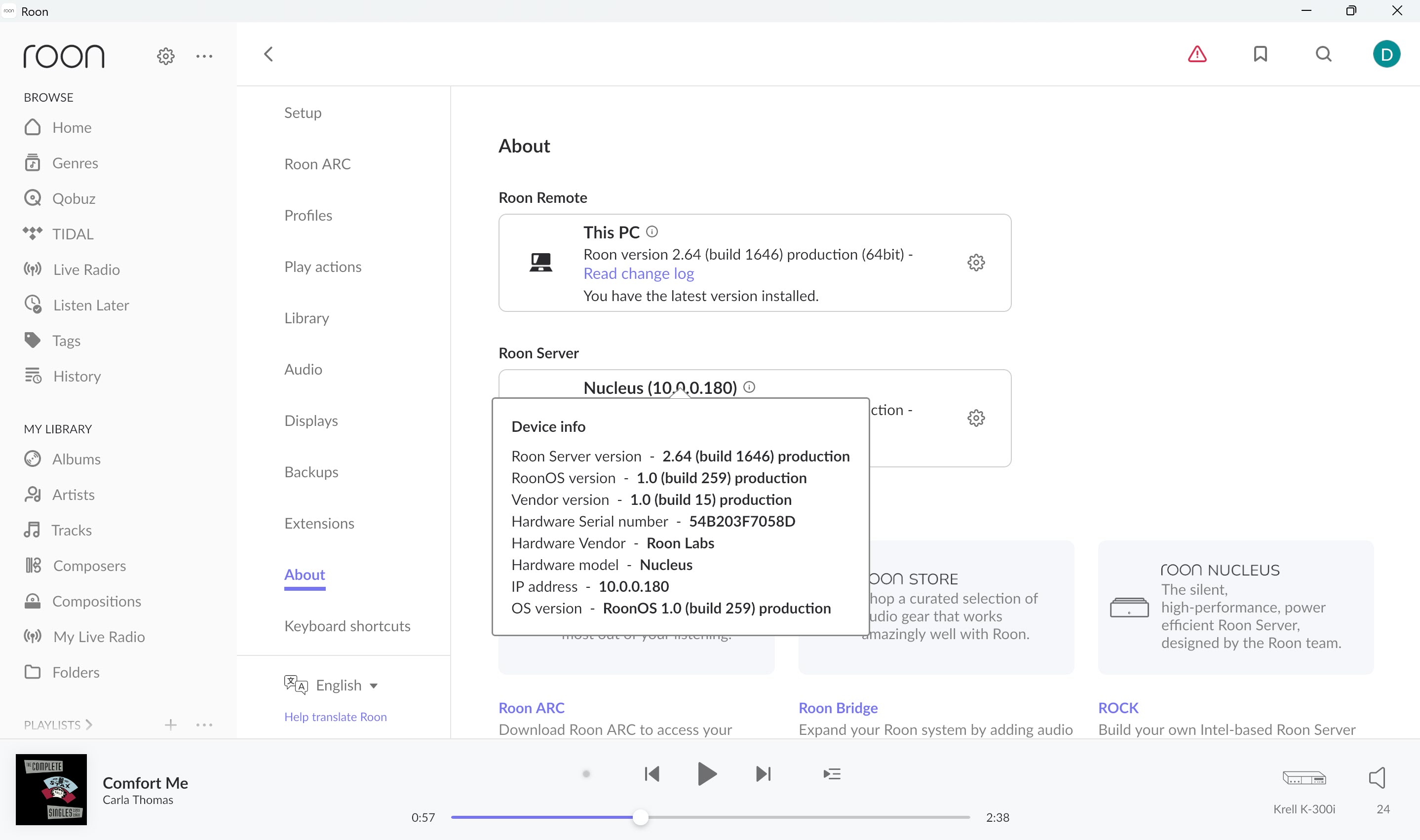 Regarding the network issues Connor mentioned, we pulled a fresh set of diagnostic logs today to see how things are looking. We are currently seeing specific network errors, namely Network is unreachable and No route to host, when your Nucleus tries to communicate with Roon’s cloud servers.