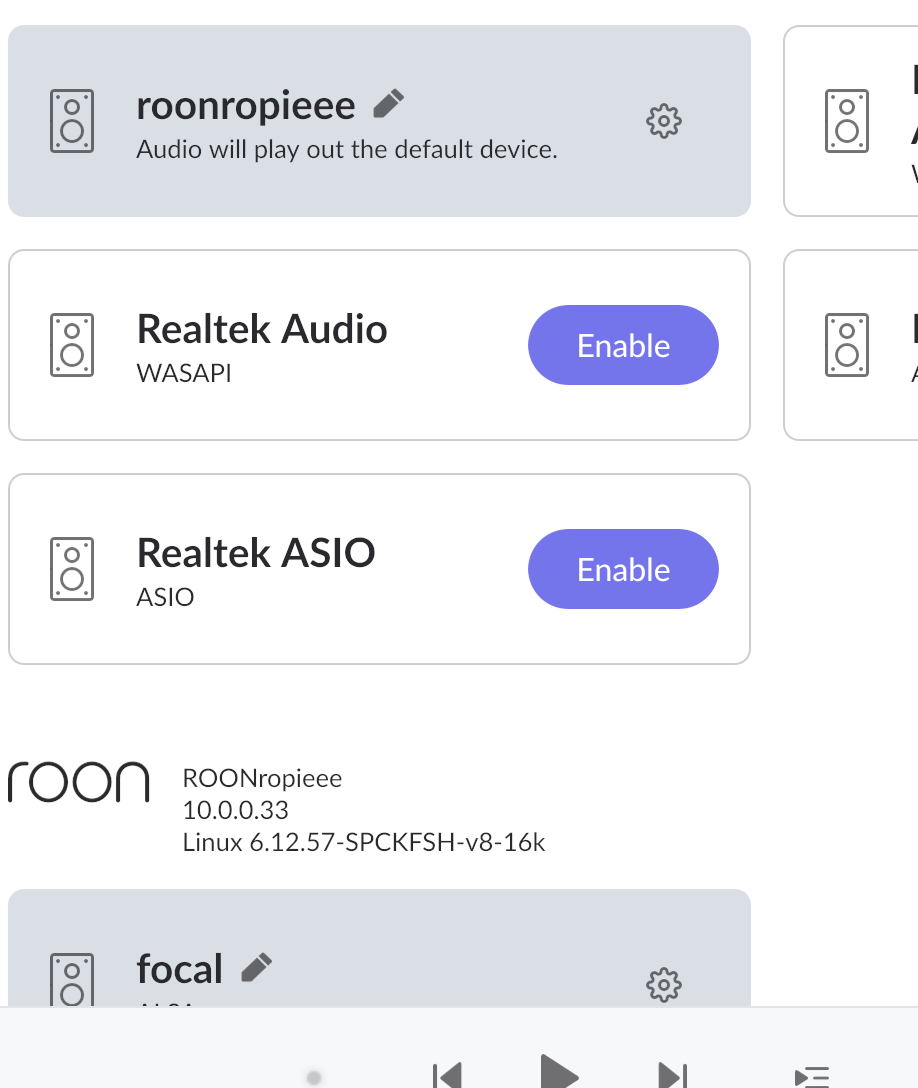 The bad news is that I can’t figure out how to change the default audio output. I am on my MacBook, I checked output options on the Mac and neither the Focal nor the ropieee is listed.