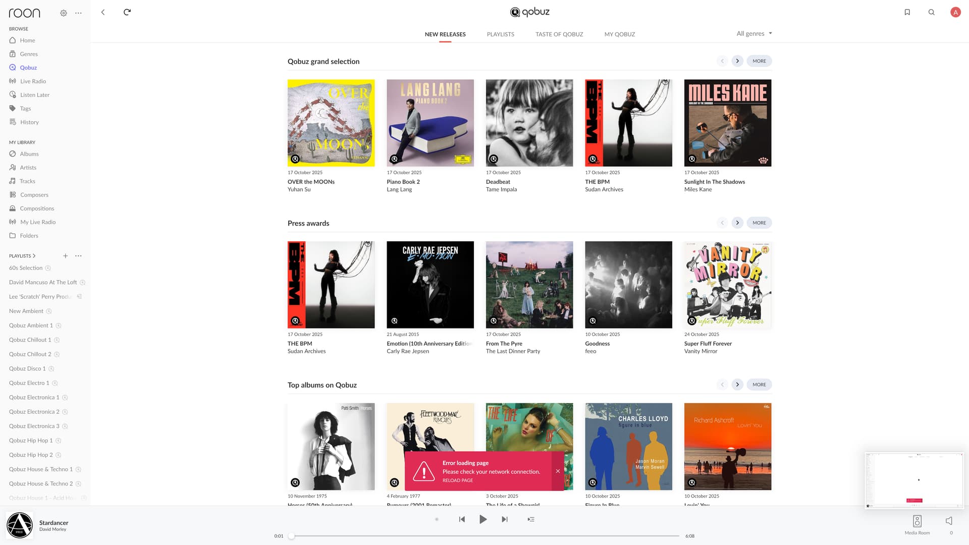 Also, I have noticed that there seems to be some issue with connectivity between Roon and Qobuz, as a playlist I put together a couple of days ago on Qobuz cannot be detected by Roon, and when I refresh Qobuz on Roon I am getting an error message.