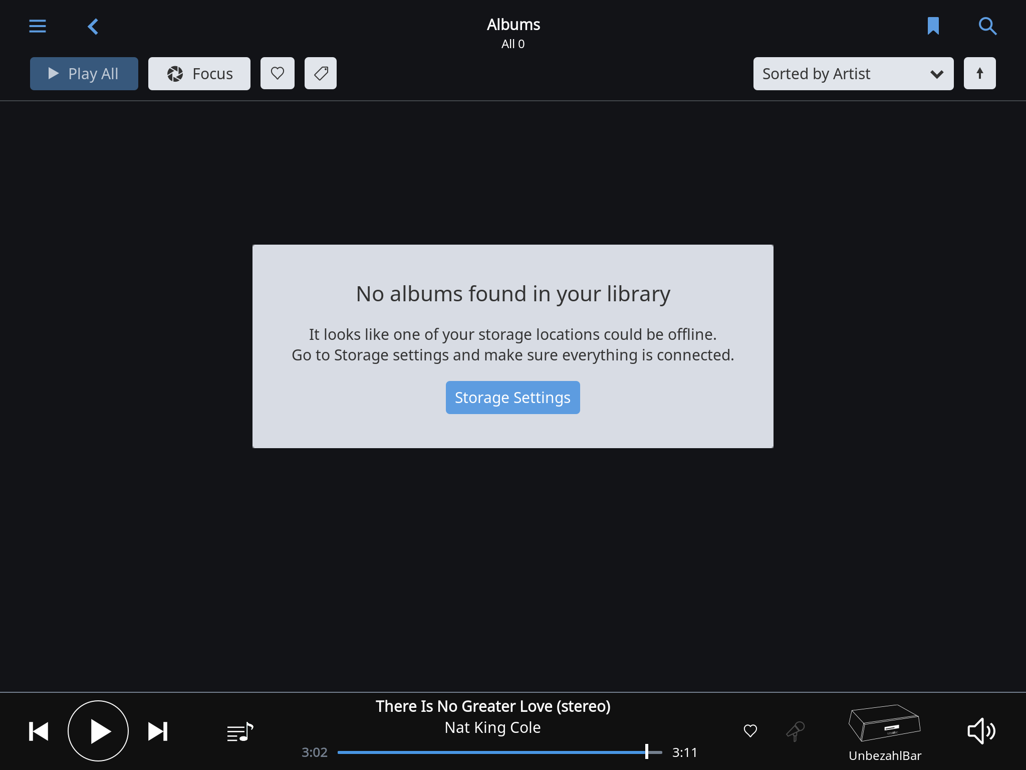 Roon on Sonic Transporter stocks with getting data from NAS “Operation in progress” but nothing happens, see screenshots below. Also miss button “force rescan”. Server on my PC works with outs hiccups. Restarted ST, Roon Server, Roon App, nothing helped.