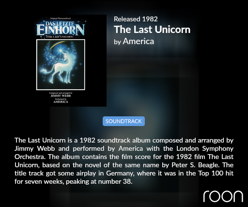 It’s fair to say that America & ‘soft rock’ are not really my thing. However, the second version of the title theme is hauntingly beautiful (other than those unnecessary harmonies @ ~1:40 and as a Jimmy Webb fan much of the soundtrack clearly has his stamp.