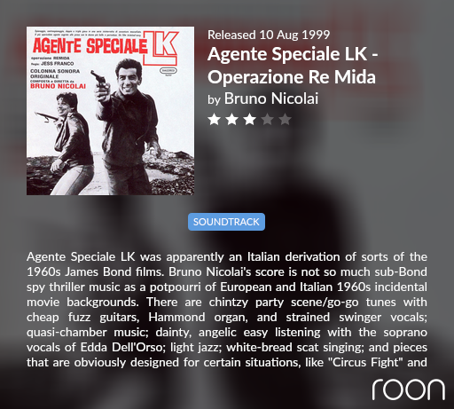 It’s varied and fun in a frivolous period of fashion, but not a high point in '60s Eurotrash film music by any means. (allmusic)