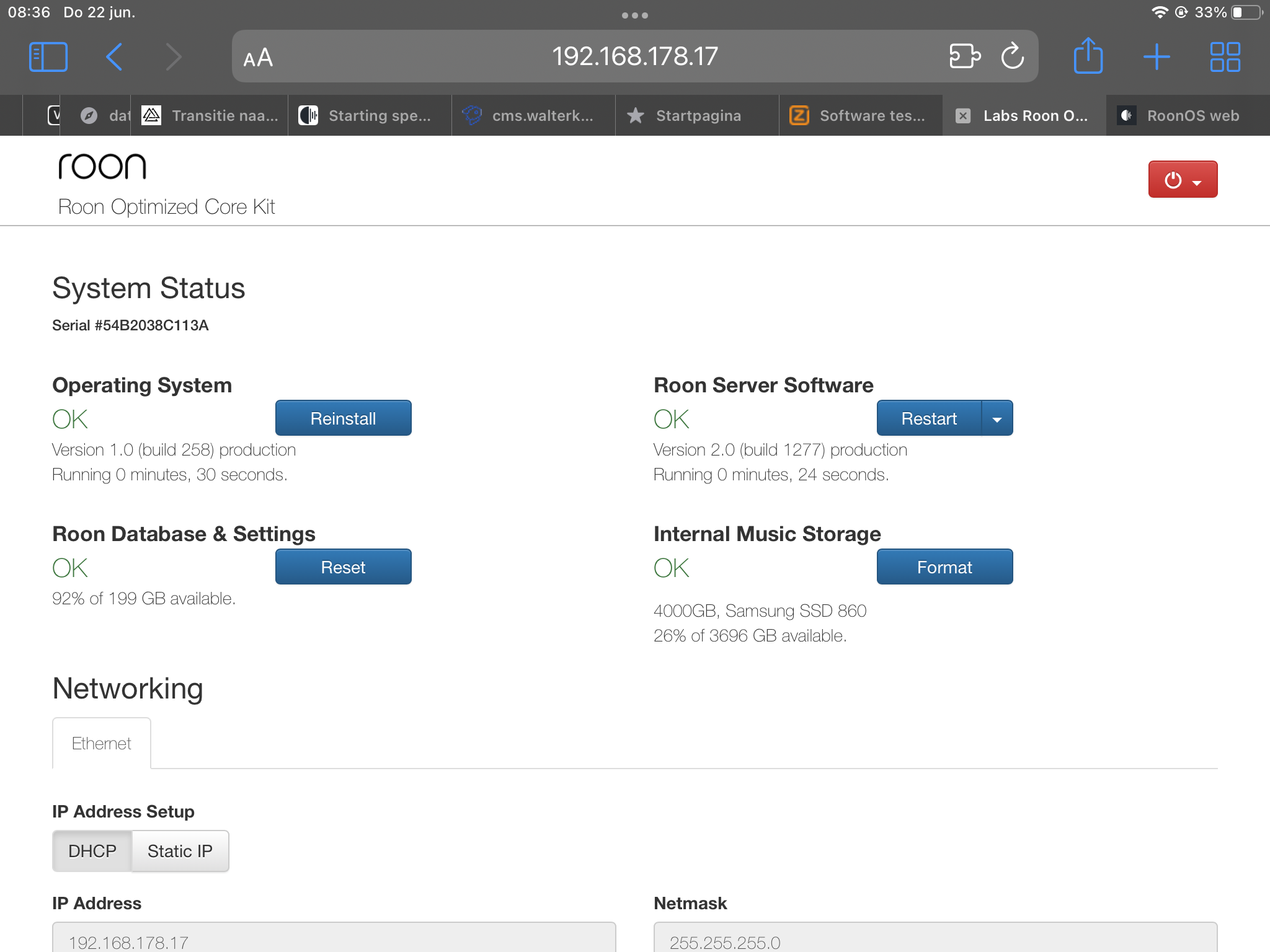 All went well but now the problem is more or less back, to start a track takes at least 7 - 20 seconds. When switching off the Nucleus Plus the rebooting takes about 45 seconds which is fine with me but realy able to use ROON will take in total about 8 minutes when I can see it on my laptop, iPad or iPhone (using an Asus Zenbook 2023, Ipad 12 Pro and iPhone 12).