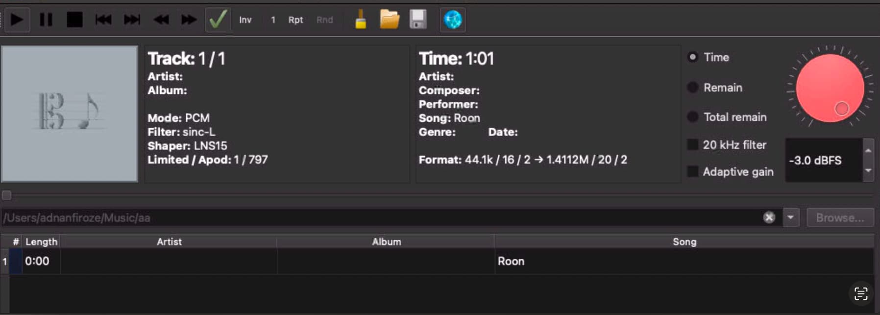 Even with “Adaptive sample rate” enabled/greyed (semi-enabled) and also forcing 44.1K sources to only integer multiples of it, I am hearing white noise behind the music (actually like 60% static noise and 40% music). The path is like this: Roon (44.1KHz) → Roon → Holo Red streamer → Holo Spring 3 KTE DAC (screenshot below). There is no issue with 48K (or 96K i.e., multiples of 48K) music files here. Only with 44.1 and its multiples does Sinc-L behave like this. I diagnosed the sample rates on the DAC screen, and everything “theoretically” is working fine except for the sound when using SINC-L. Computation power is not an issue - no stuttering.