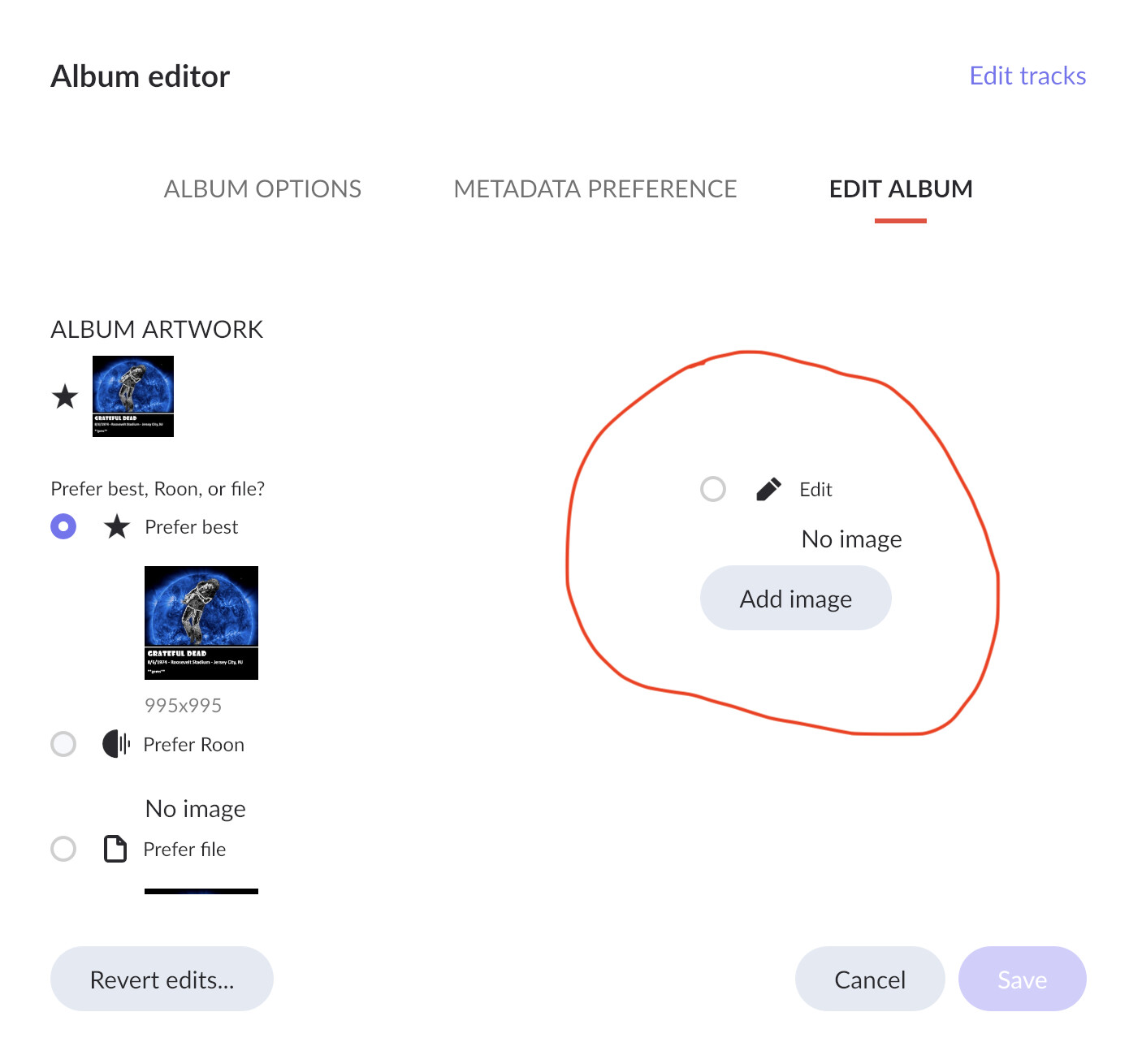If you upload an image using that button, Mike, it’s correctly displayed for the album. But, again, it’s not stored in the album folder, which I’ve confirmed both in Roon and in the Mac Finder.