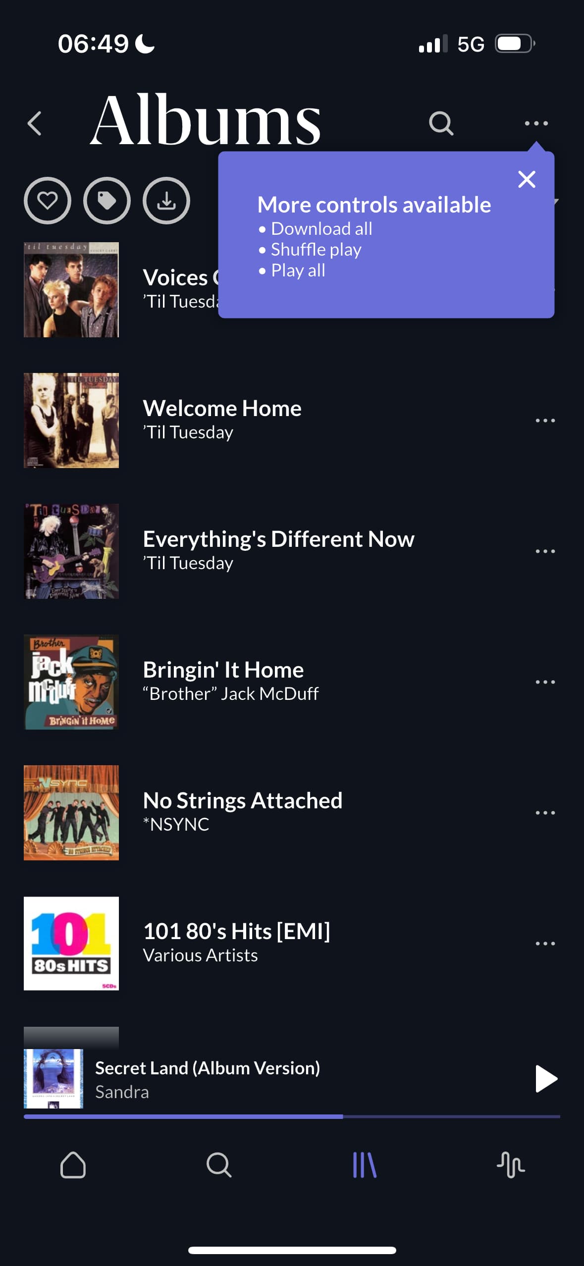 Settings / Play actions / Playlists and mixes