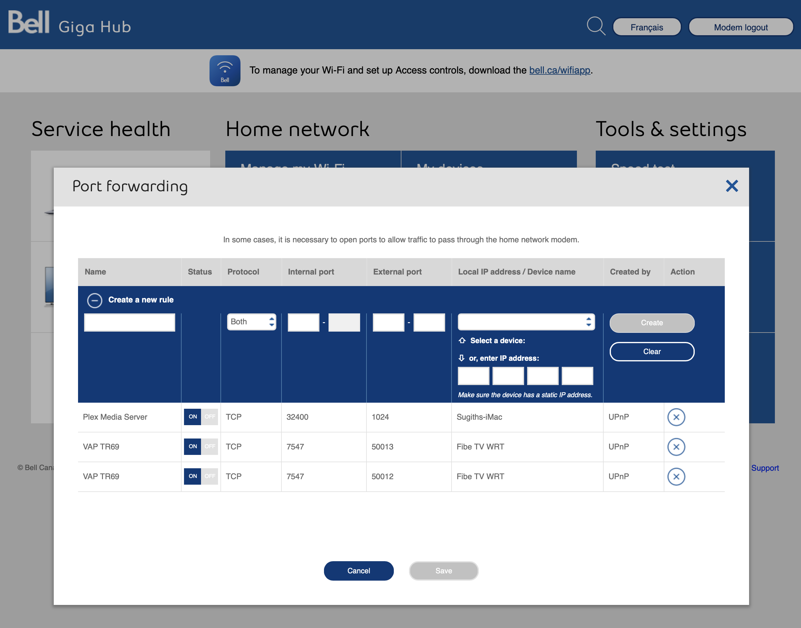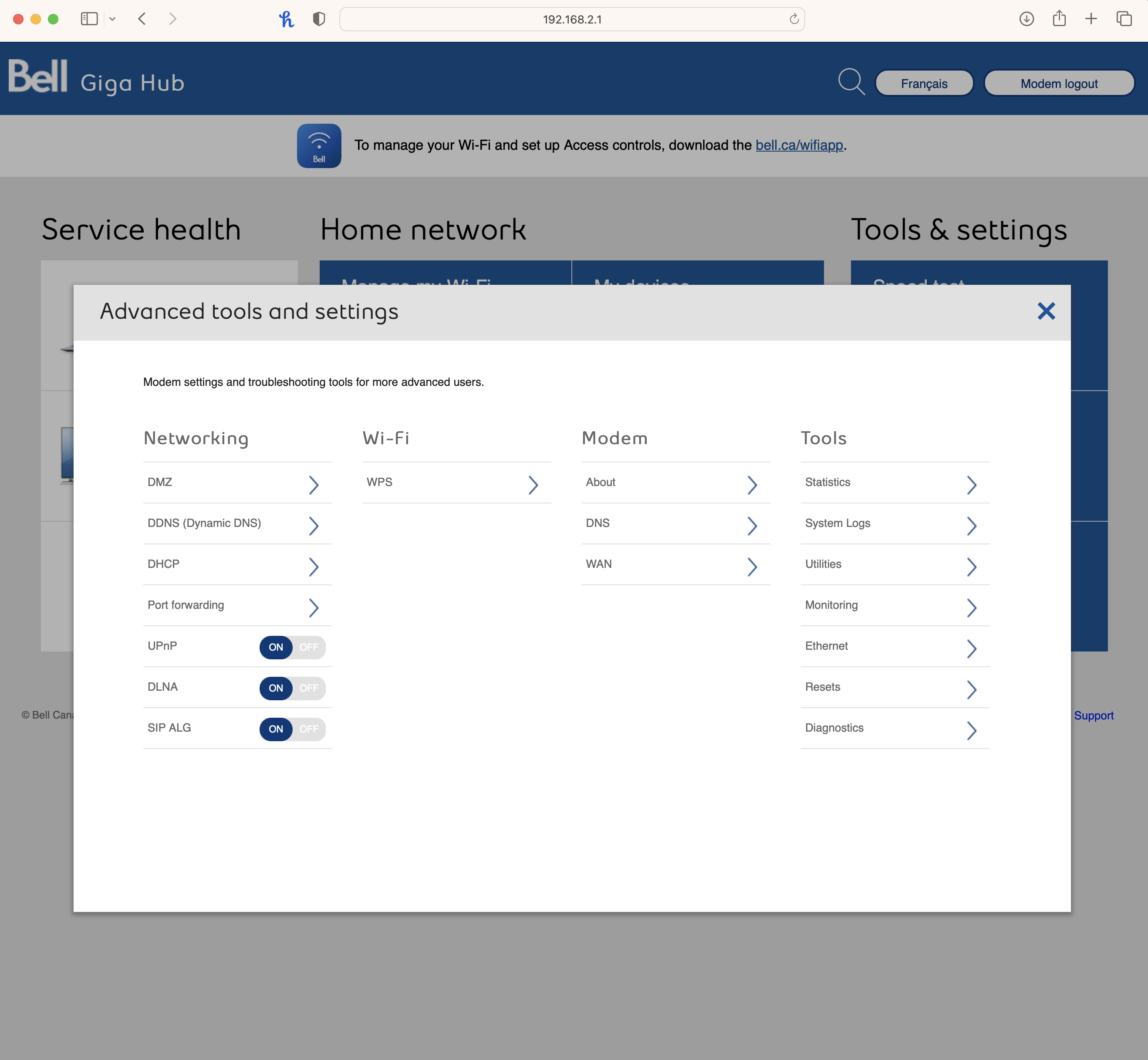 Description of Issue: After switching from Bell Canada 3000 router to Bell Giga Fibre router, Roon Arc no longer sees core. Bell Giga Fibre modem settings has UPnP on and Roon Arc settings port has not changed and remains set at 55000