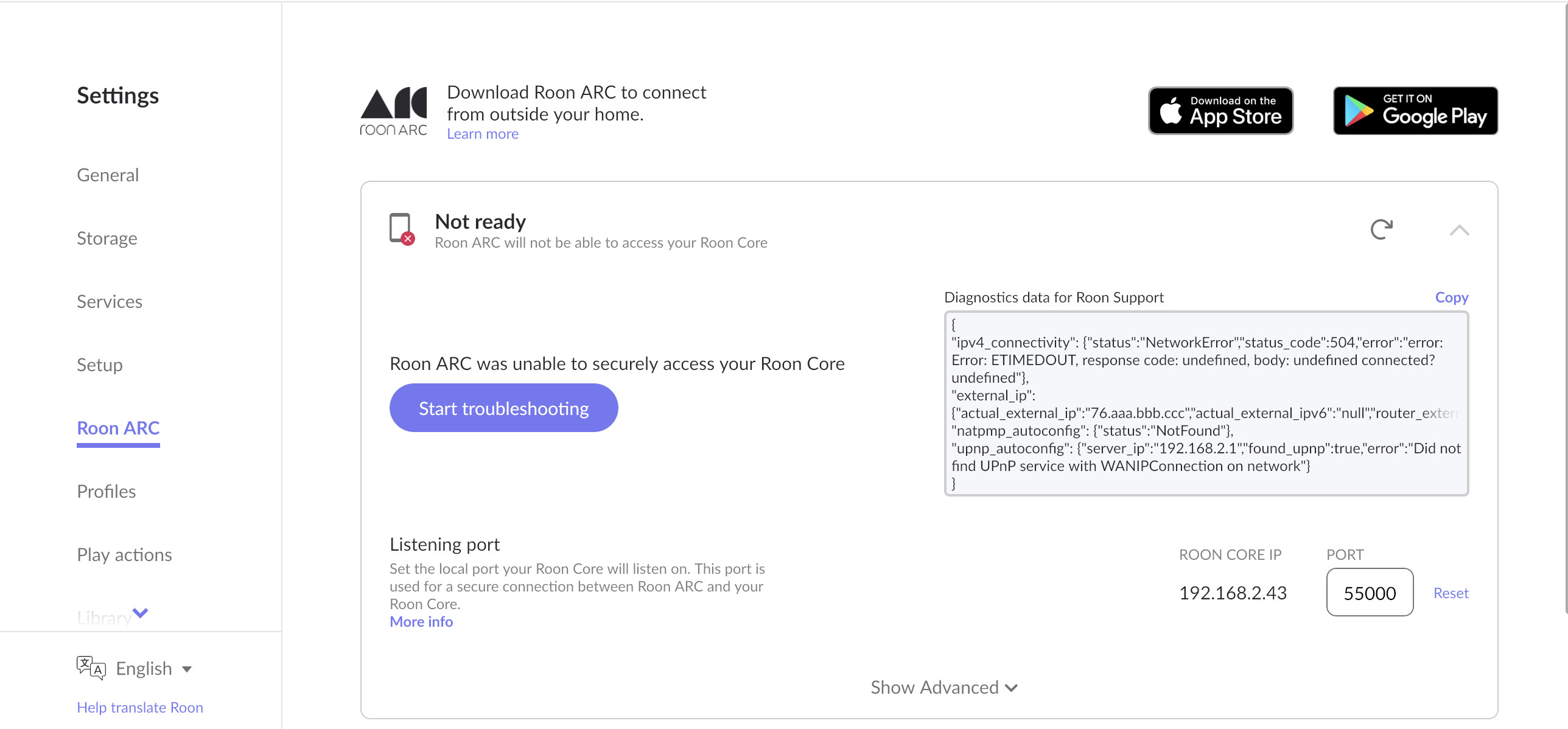@SVinTO, what is the specific ARC error message you see under Roon’s Settings → Roon ARC. Also, please complete this template which will assist Roon and Community with your issue: