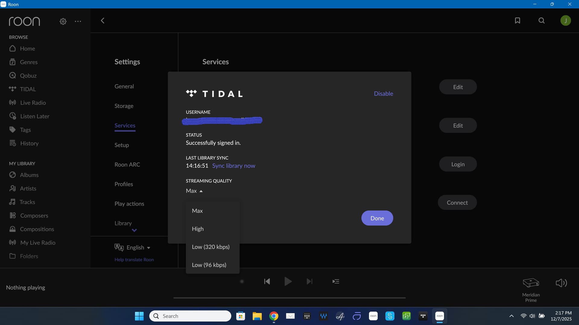 To avoid doubt, can you confirm this was for the Tidal account in Roon’s Settings?