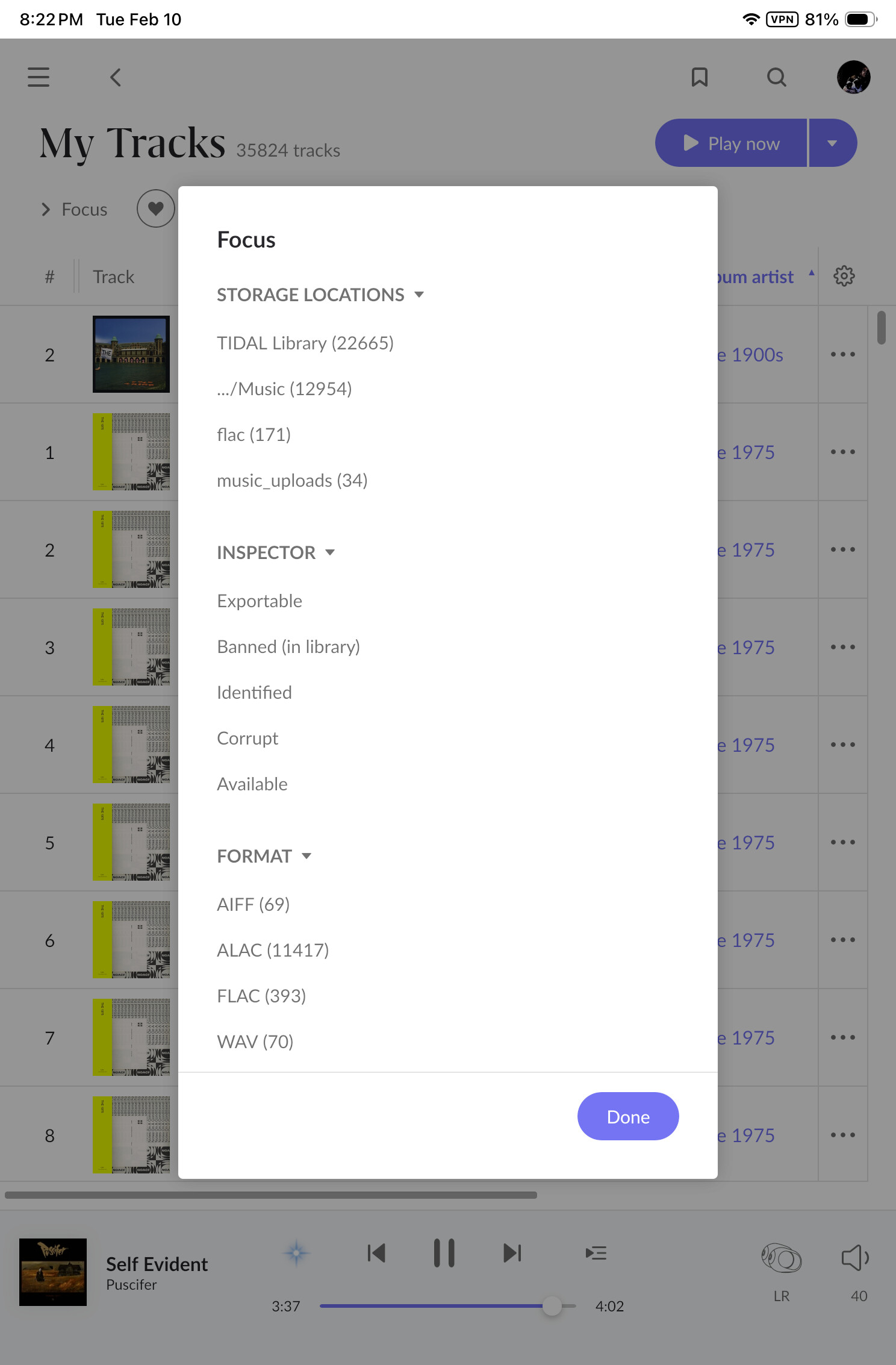 While my track count is smaller (27k, local+Qobuz), I don’t think that’s the issue.