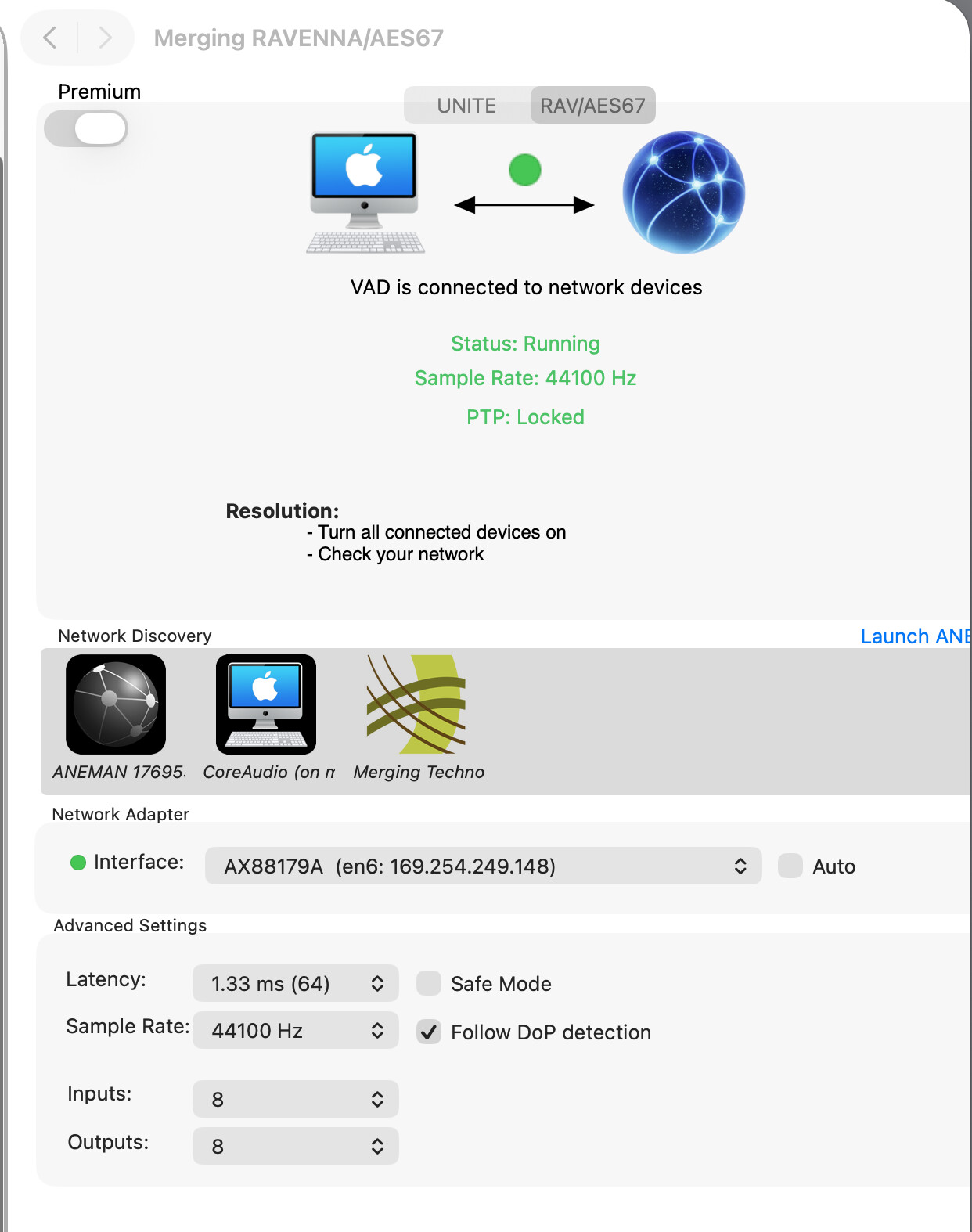 Trace: [Merging RAVENNA/AES67] [raatclient] GOT [7] {"samples":427990,"status":"Dropout"}