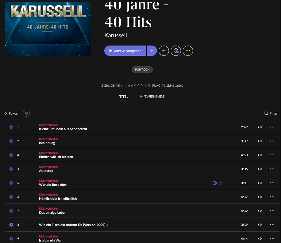 Thanks. I test add. with the Bluesound App. The same tracks are not available here. It’s probably a problem with Tidal’s API.