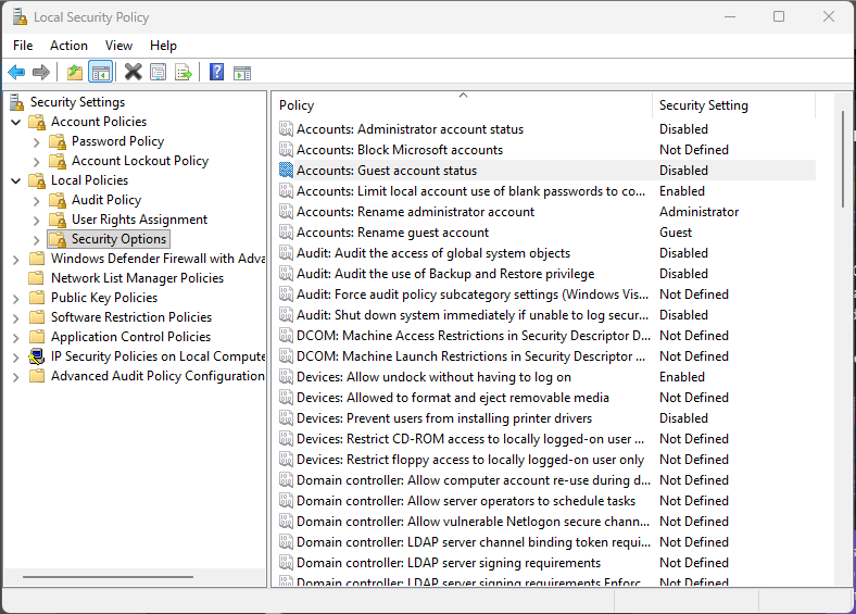 Accounts: Guest account status > set to Enabled