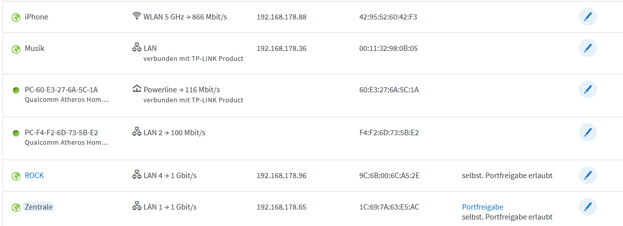 ROCK and NAS are direct connected to the FritzBox.