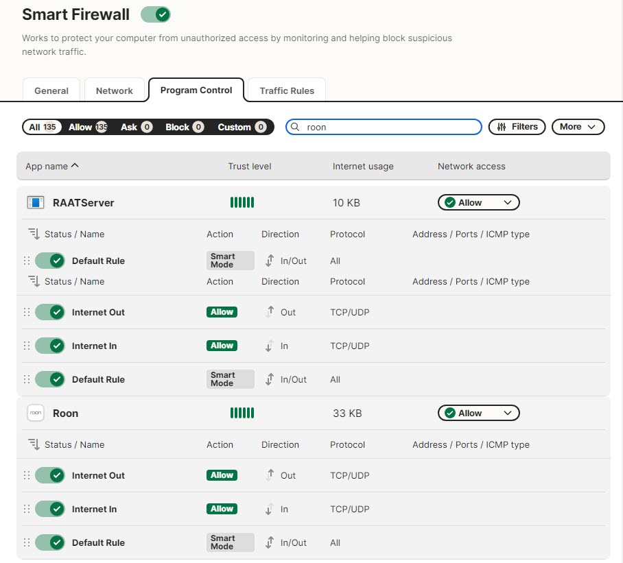 Vadim - I already uninstalled and then reinstalled Roon on my PC, so I can’t restore the quarantined files, and the RAATServer & Roon were already allowed on my Norton Firewall when I reinstalled the software.
