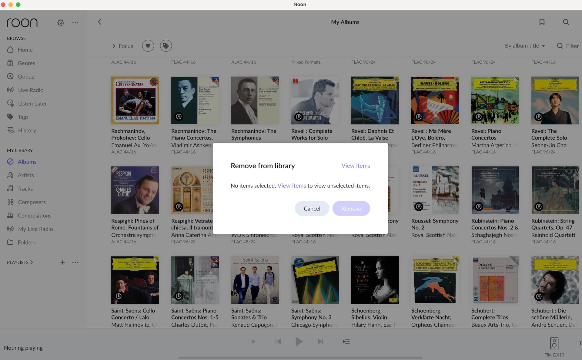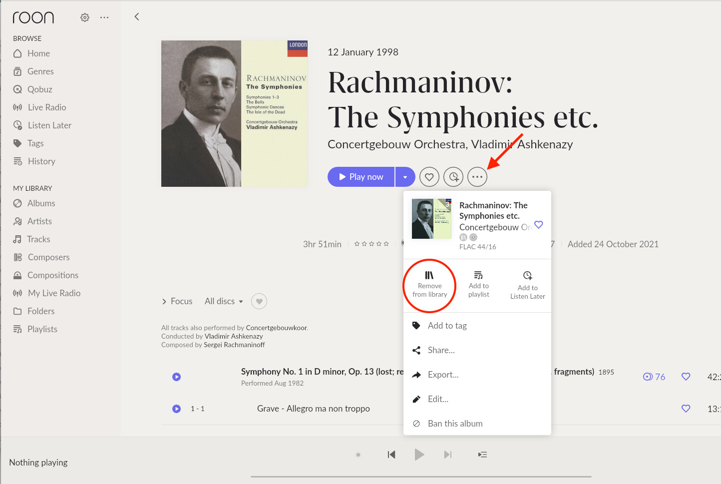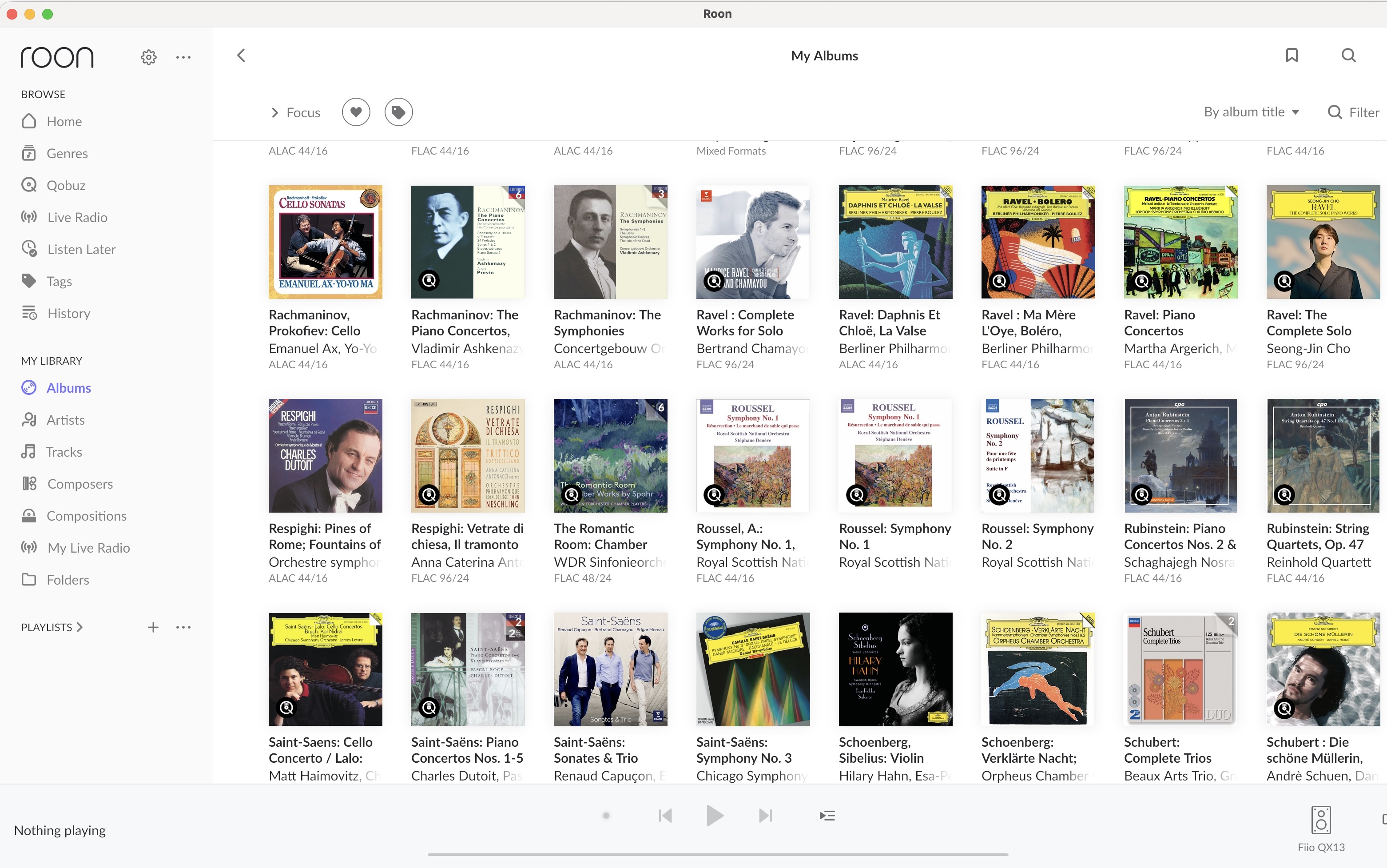 If you look at the screenshot of classical albums below, you’ll see two versions of “Roussel: Symphony No. 1”. The one on the right contains no file format listed below the album cover. (The “Roussel: Symphony No. 2” album next to it is experiencing the same issue).