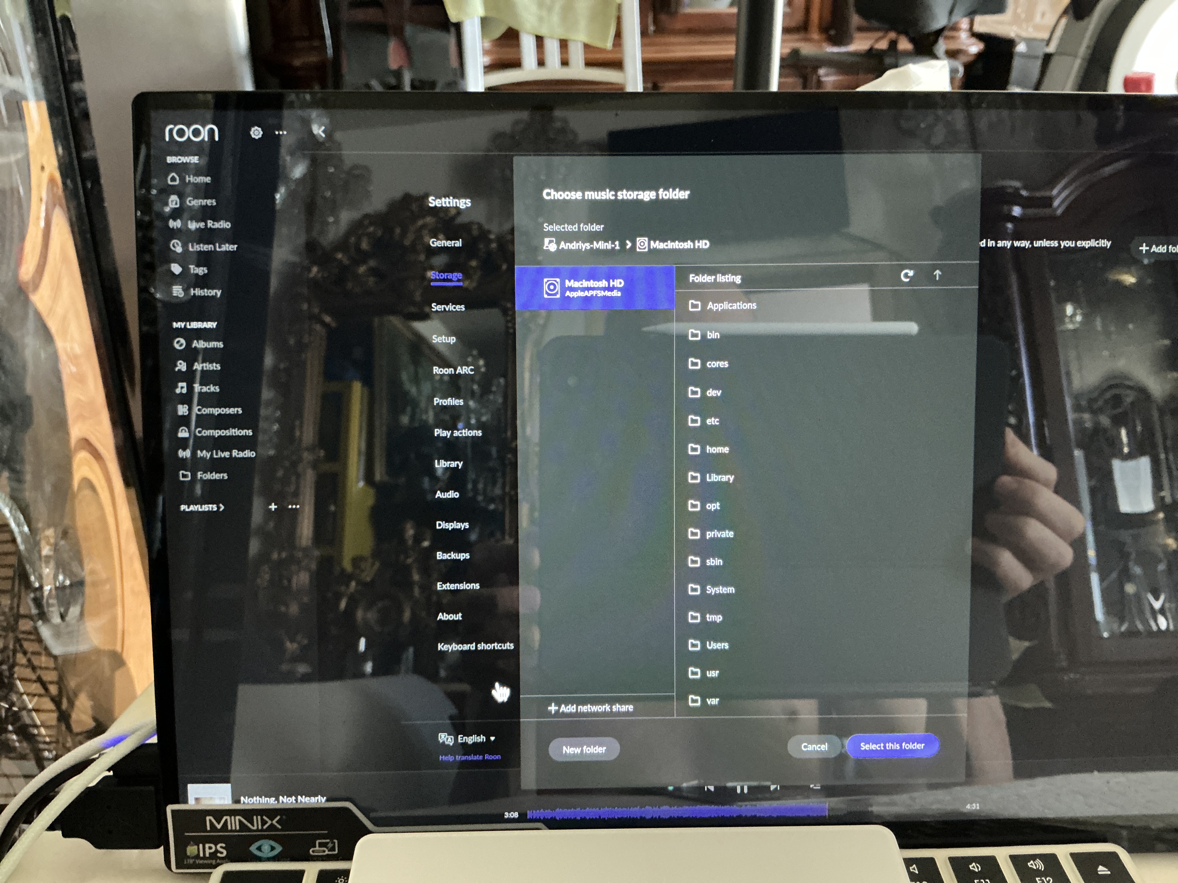 · Hi. I just bought lifetime subscription and in the settings - storage - folders I added folder with music files on my external SSD SanDisk extreme pro 1TB and everything worked perfectly on my MacMini late 2014 iOS Monterey 12.7.6. Then I’ve decided to disconnect external SSD and to connect Samsung Micro SDXC UHS-1 Card 1TB, and my MacMini read it perfectly, but in the ROON setting - storage - add folder I see my Mini-1 - Macintosh HD as I choose in the beginning, and I can’t find the way to go back so I could chose MicroSD card as a primary music storage folder. Please help me to fix this. Sincerely, Andriy Skidanov.
