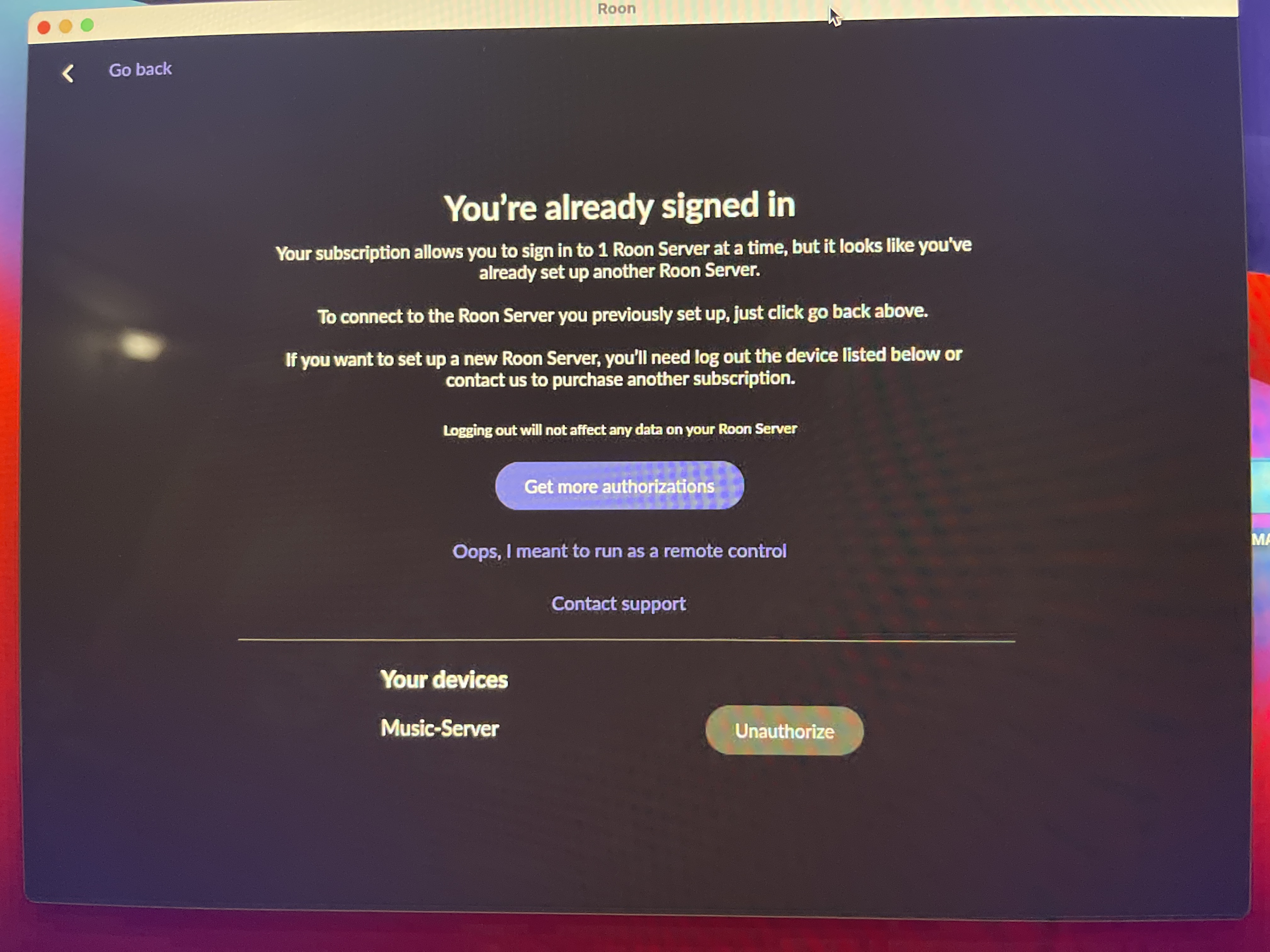 Sometimes Roon licensing server gets confused and thinks the current Roon Server is an additional different installation.