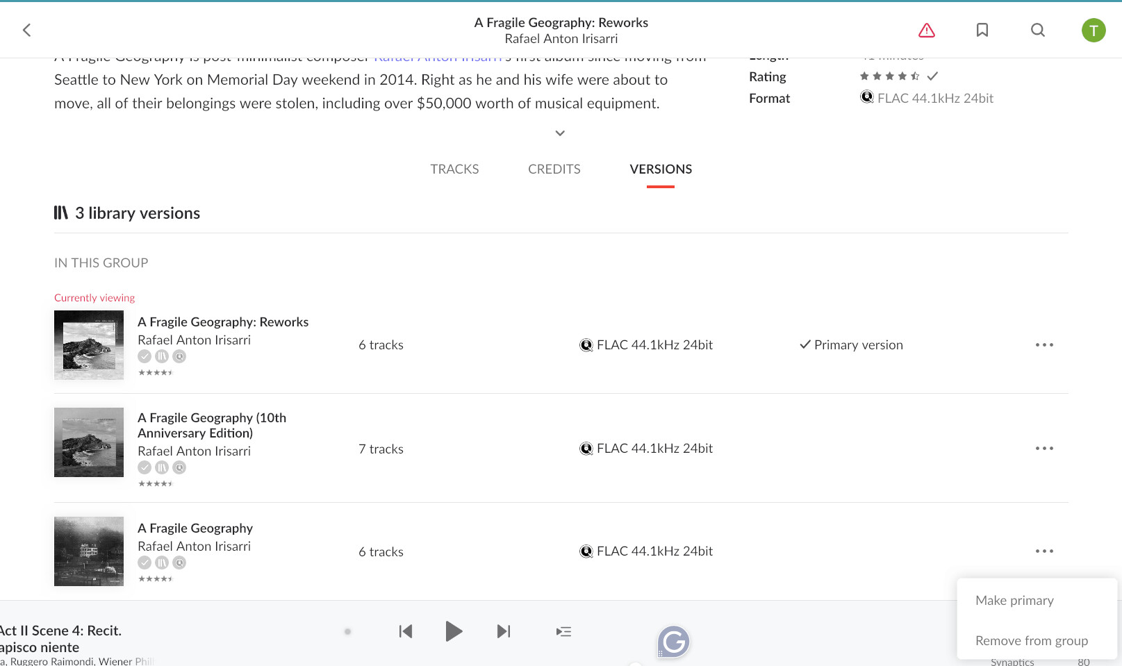 Is there a way of ungrouping re-worked, re-mixed, etc. albums yet? Or does this just need to be highlighted for resolution at the back-end, by Roon or TiVo, or whoever.